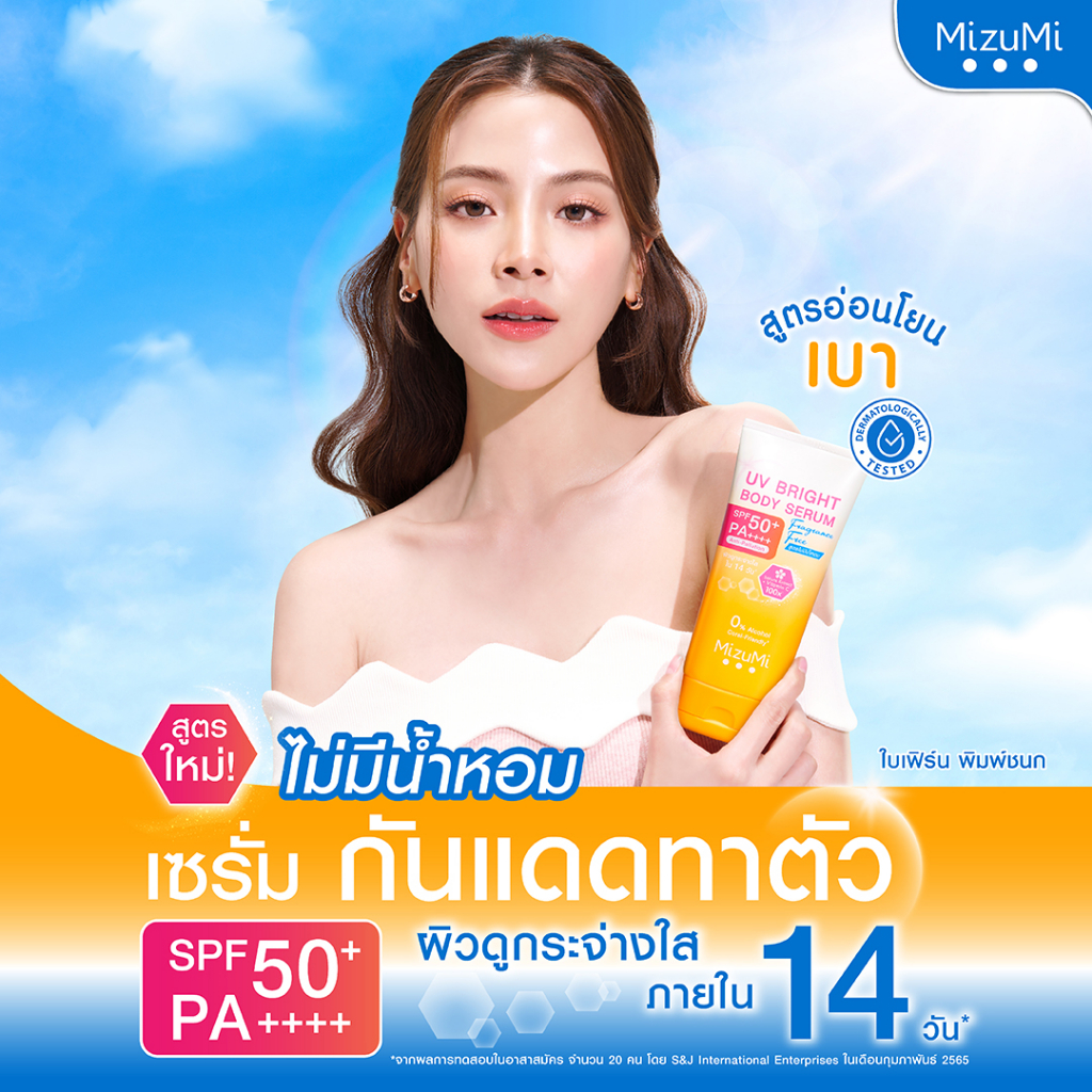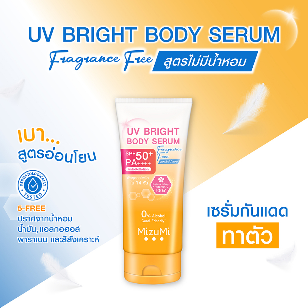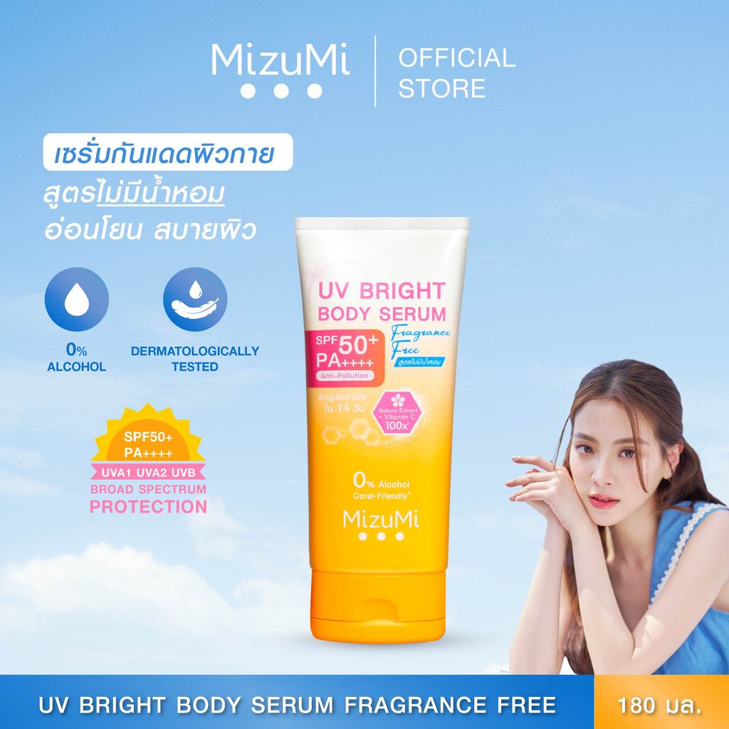 MizuMi UV Bright Body Serum Fragrance Free (180 ml) เซรั่มกันแดดทาผิวกาย เบาสบายผิว สูตรอ่อนโยน ไม่มีน้ำหอม