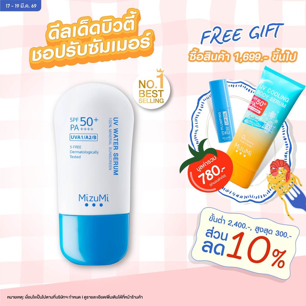 MizuMi UV Water Serum SPF50+ PA++++ 40g No.1 Best Selling Sunscreen เซรั่มกันแดด บางเบา ซึมไว ไม่อุดตัน ปกป้องสูงสุด