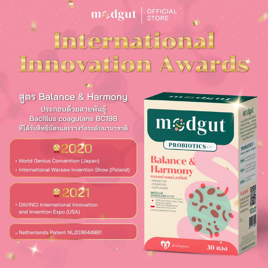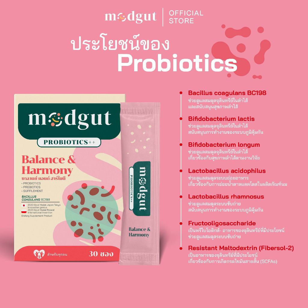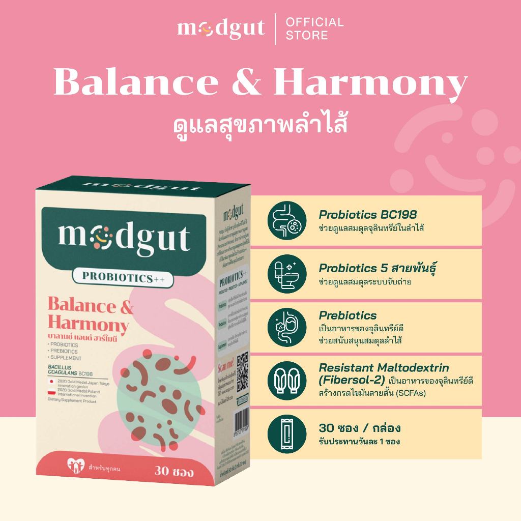 Modgut โพรไบโอติก Probiotics++ สูตร Balance & Harmony สำหรับท้องผูก ช่วยสมดุลลำไส้ 30 ซอง ทานได้ทุกวัน