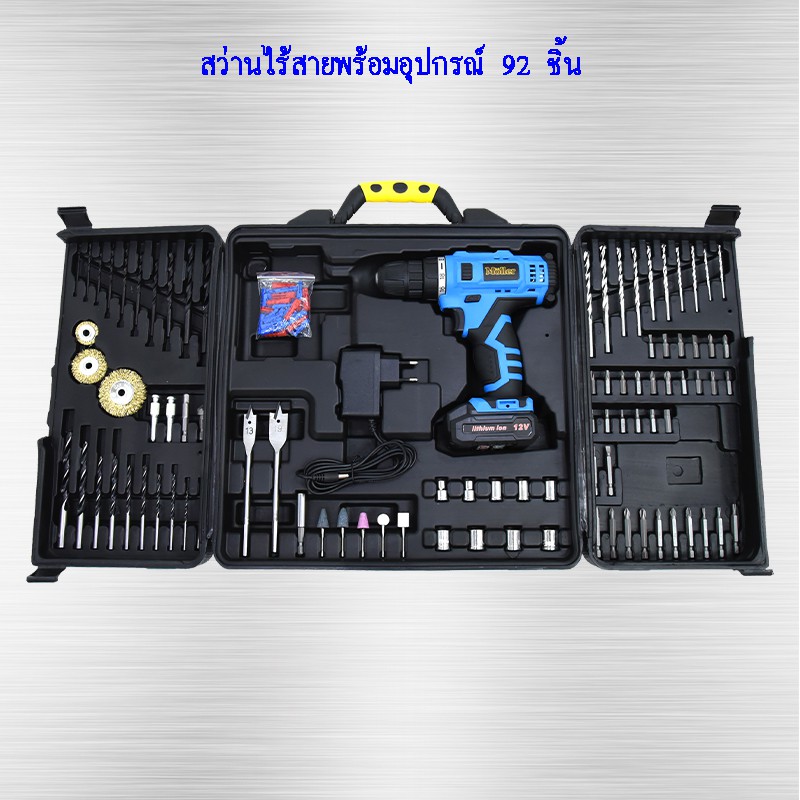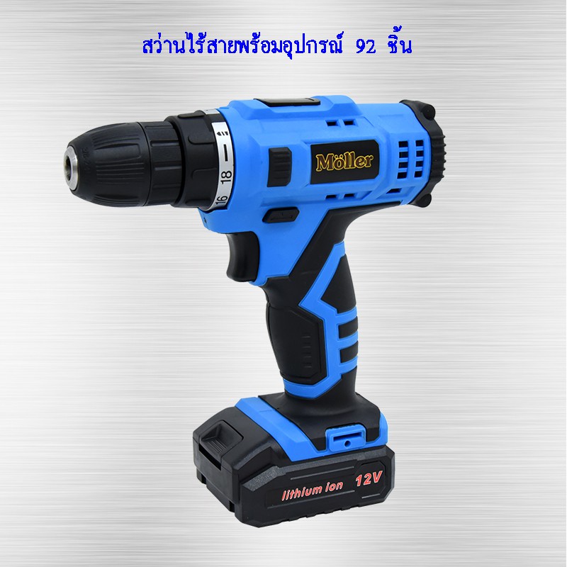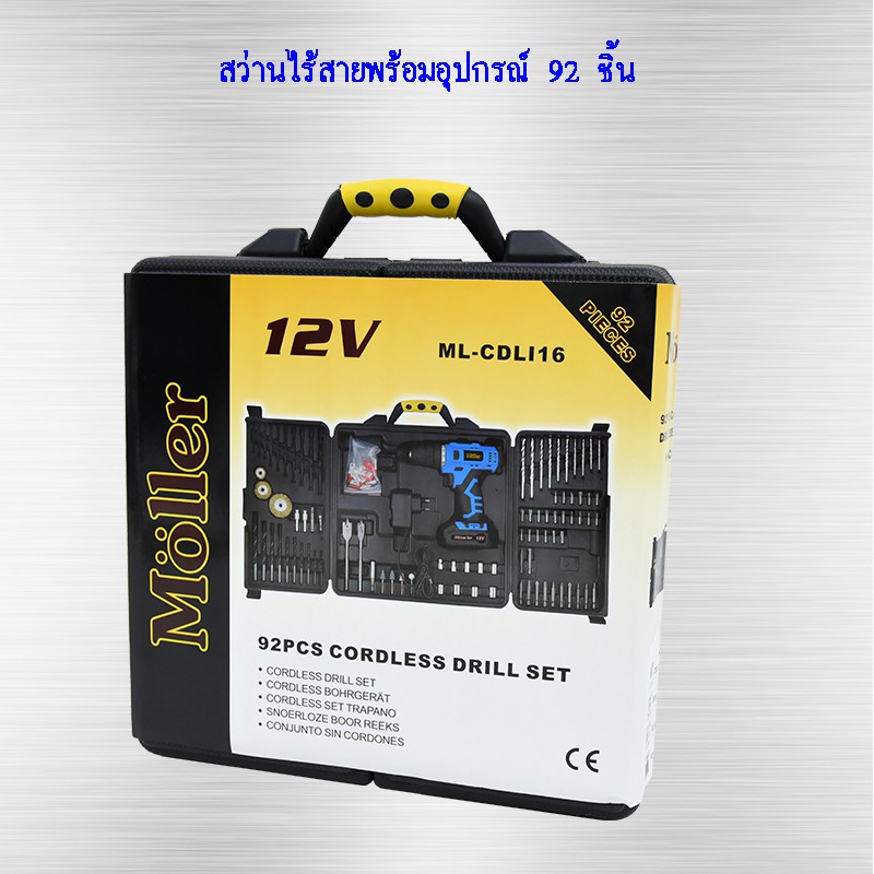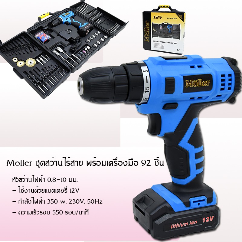 Moller ชุดสว่านไร้สาย พร้อมเครื่องมือ 92 ชิ้น แบตเตอรี่ Li-ion รุ่น CDI16 สว่าน