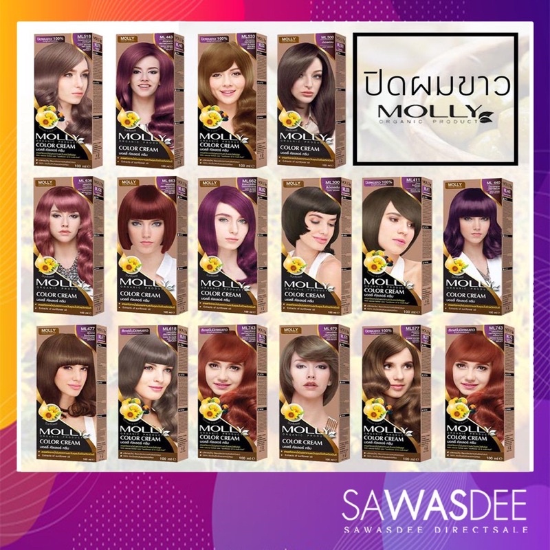 Molly Color Cream มอลลี่ ครีมเปลี่ยนสีผมออแกนิค โทนสีแฟชั่นปิดผมขาว