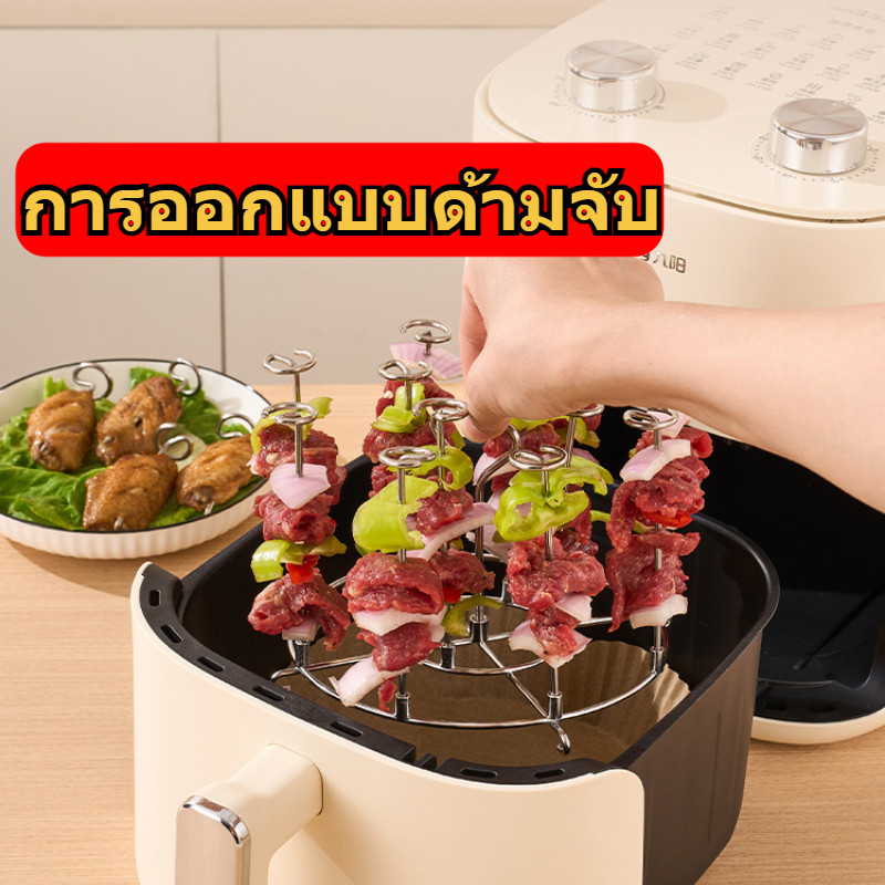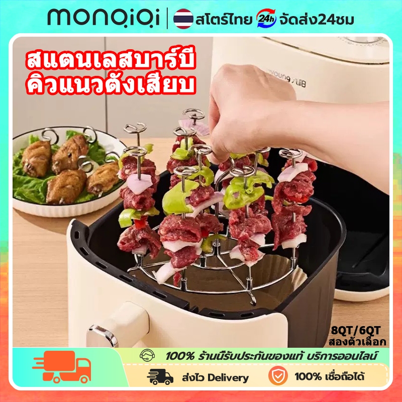 MonQiQi อุปกรณ์เสริมเตาอบ ชั้นวางย่างสำหรับหม้อทอดอากาศ Ninja Foodi 6Qt 8Qt 304 ผู้ถือเสียบไม้แนวตั้งพร้อมขาตั้ง