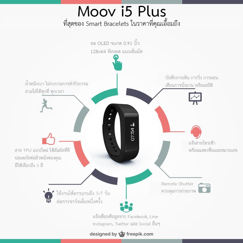 [1683บ.โค้ด SATHAJ88] Moov Smart Watch Bandรุ่น i5 Plus สายรัดข้อมืออัจฉริยะ คู่มือไทย สายรัดข้ อมือเพื่อสุขภาพ