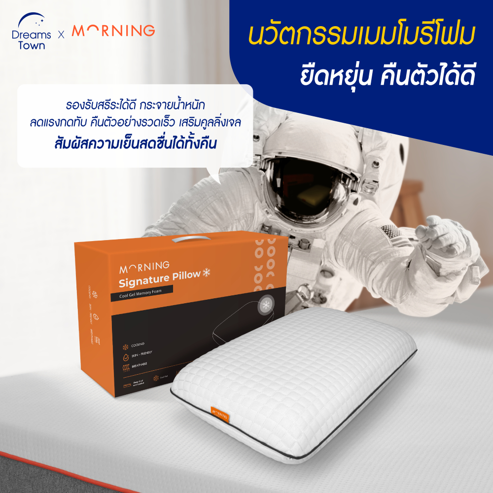 Morning Sleep หมอนเมมโมรี่โฟม Memory Foam เหมาะสำหรับคนที่ชอบนอนหมอนนุ่มแต่ไม่ยวบ รุ่น Signature Pillow