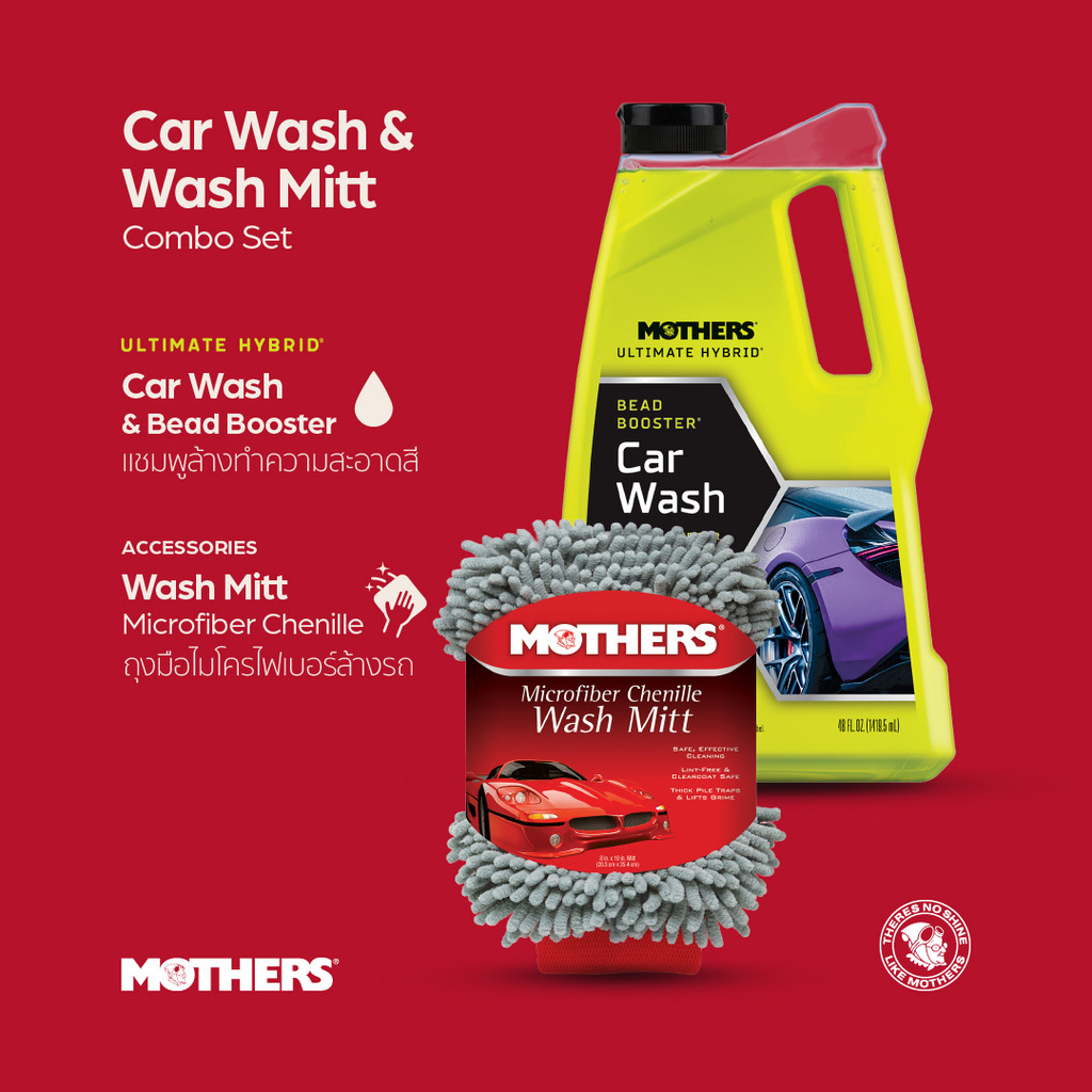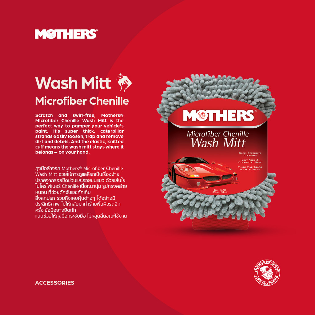 Mothers® Microfiber Chenille Wash Mitt ถุงมือล้างรถ ผ้าหนานุ่ม ไม่ทำให้เกิดรอยขีดข่วนและรอยขนแมว