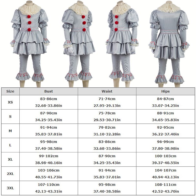 Movie Stephen King's It Pennywise Cosplay Costume for Adult Kids Clown Halloween Joker Cosplay Suit with Mask Gloves Shoes