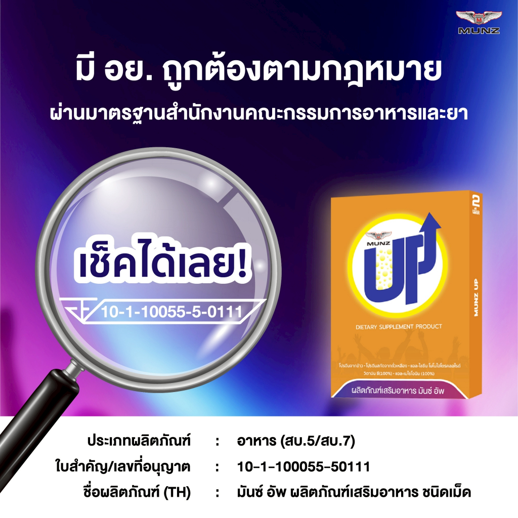 Munz up 2 เม็ด 6 กล่อง อาหารเสริมเพื่อสุขภาพ บำรุงตับ เคี้ยว 2 เม็ด ไม่อ๊อง ไม่แฮงค์