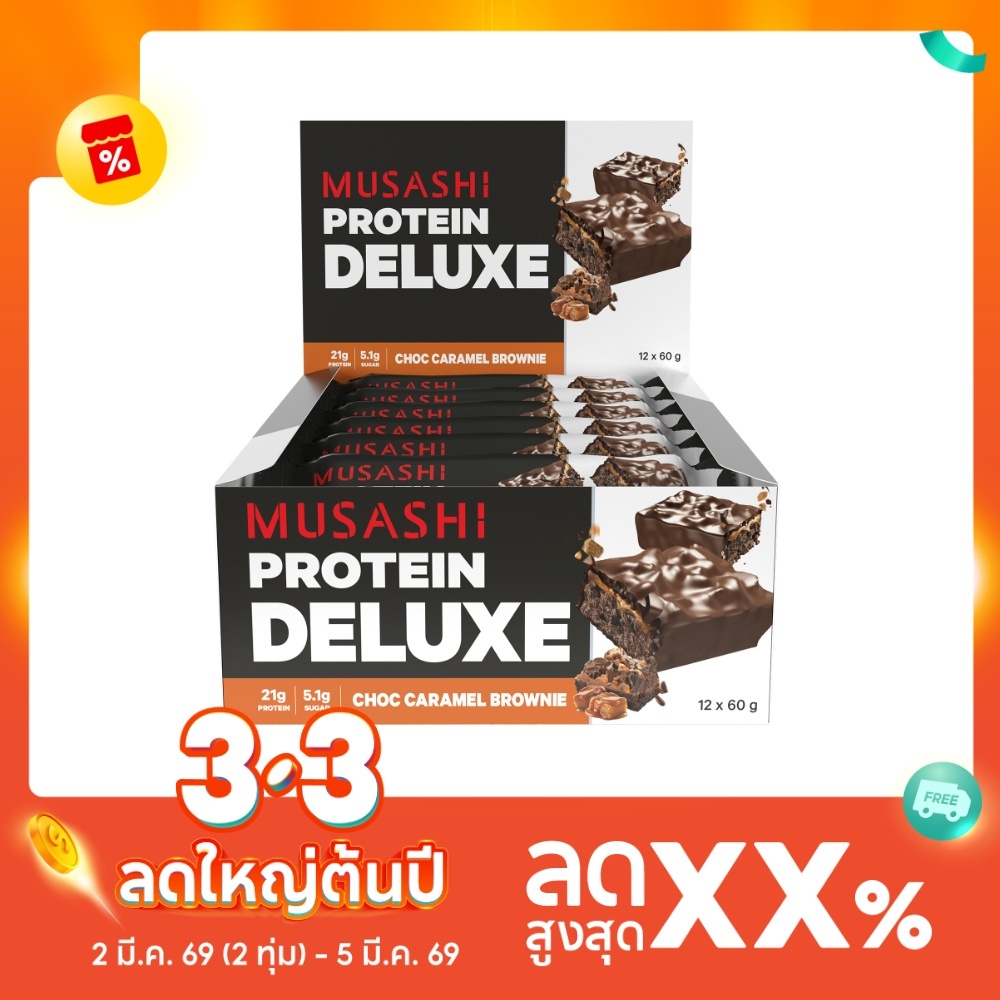 Musashi Deluxe Protein Bar (Box of 12) โปรตีนบาร์ โทรตีน 21 กรัม (สินค้าใหม่)