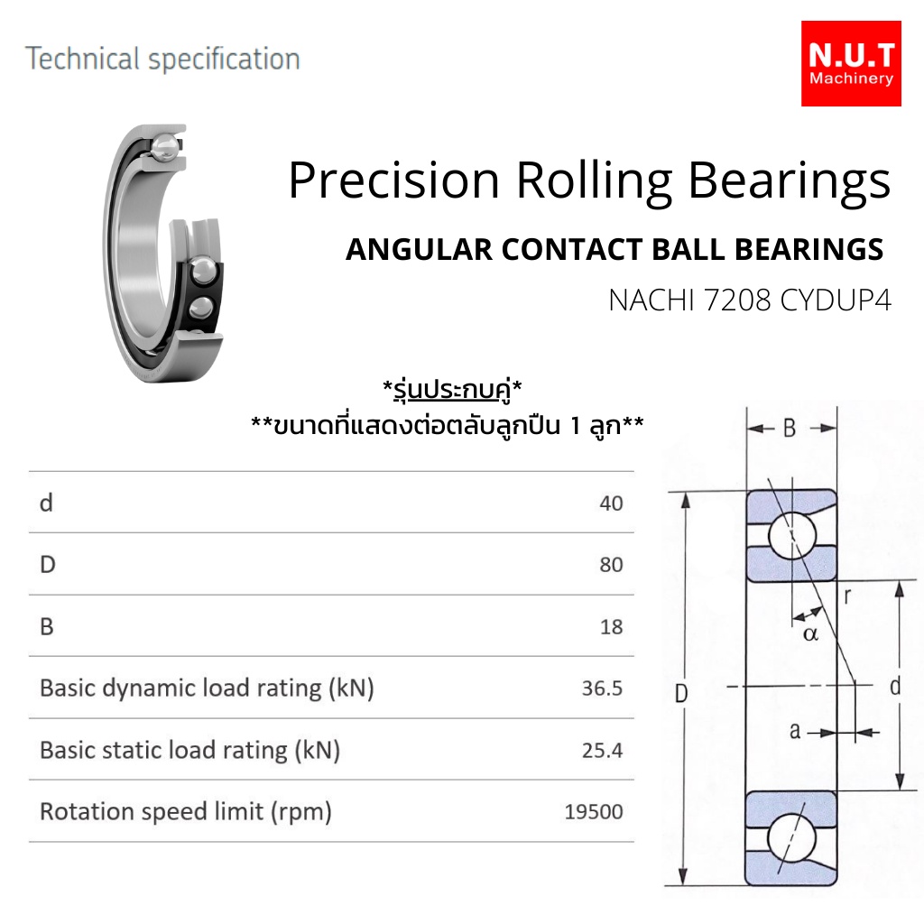 NACHI 7208 CYDUP4 ตลับลูกปืนความเที่ยงตรงสูง **รุ่นประกบคู่** Angular Contact Super Precision Bearings