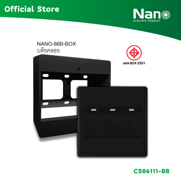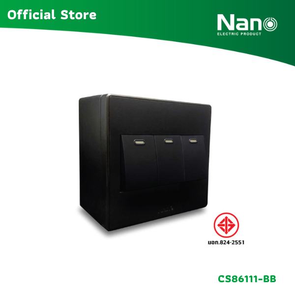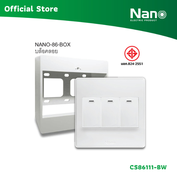 NANO ชุดฝา 3 ช่อง 3 สวิตช์ และบล็อกลอยขนาด 3*3 นิ้ว Classic series (1 ชิ้น/กล่อง) รุ่น CS86111