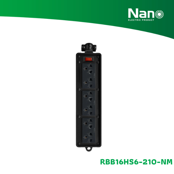 NANO บล็อคยาง 2x10" เต้ารับ 6 ช่อง + เมนสวิทซ์ 10A (ไม่มีสายไฟ) (1 ชิ้น/กล่อง) รุ่น RBB16HS6-210-NM
