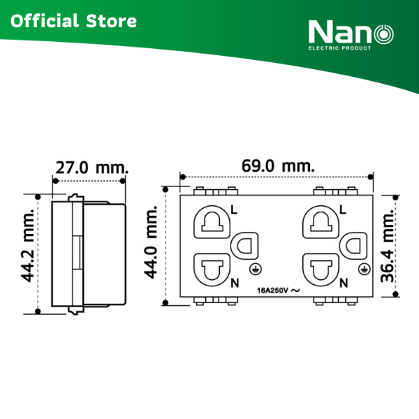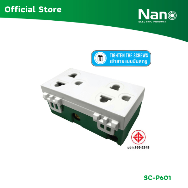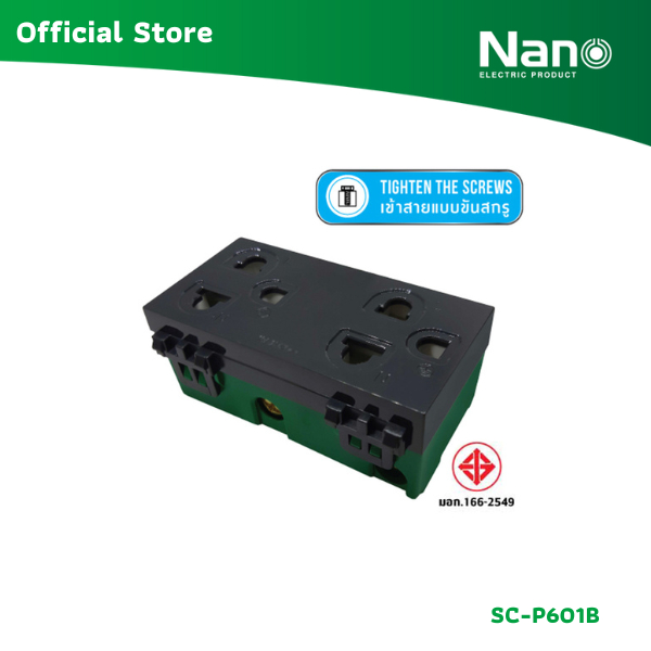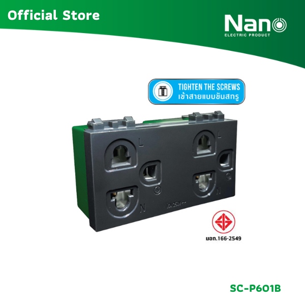 NANO เต้ารับคู่มีกราวน์ 16A 250V ขนาด 3 ช่อง (แบบขันน็อต) Classic series (1 ชิ้น/กล่อง) รุ่น SC-P601