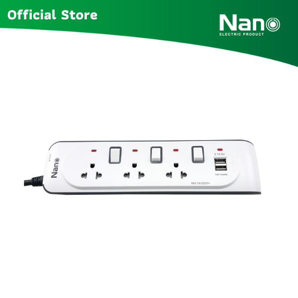 NANO Surge Pro ปลั๊กพ่วงป้องกันไฟกระชาก USB 2 ช่อง + เต้ารับ 3 ช่อง (สายยาว 3M, 5M) (1 ชิ้น/กล่อง) รุ่น NN-CES3U
