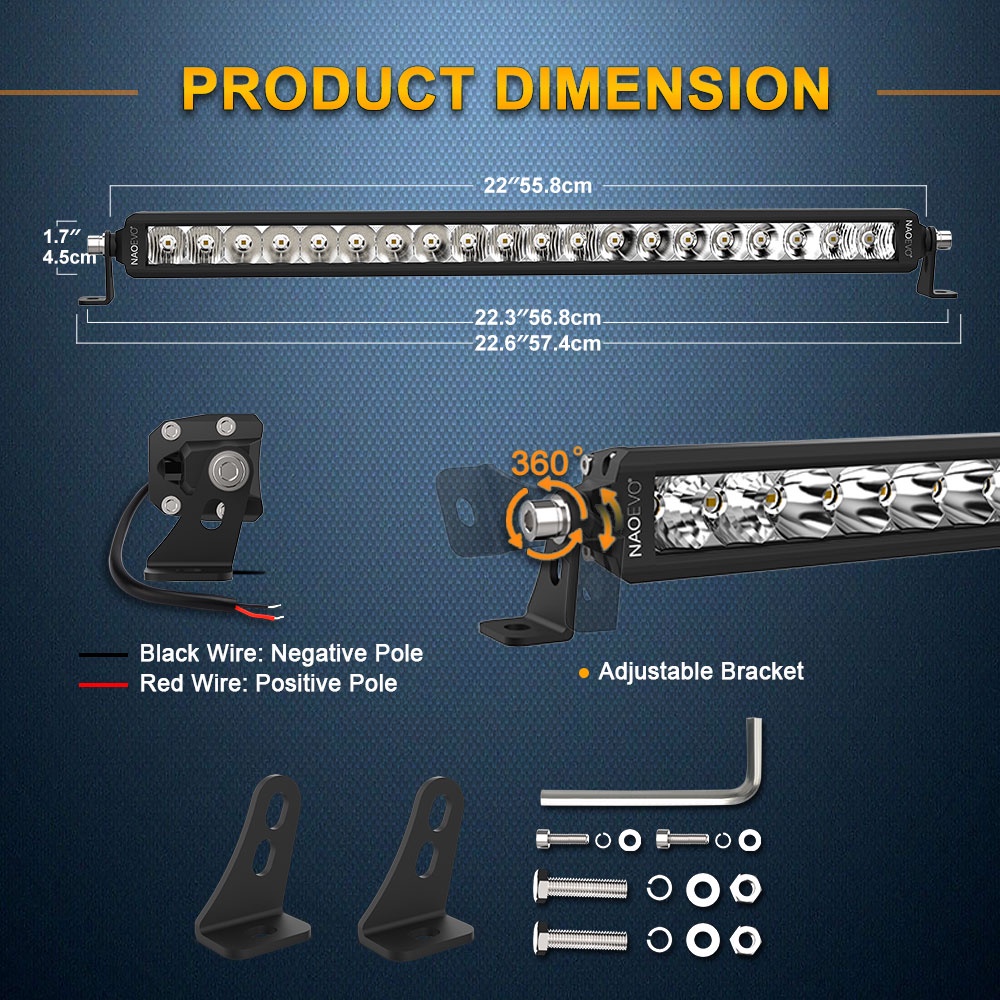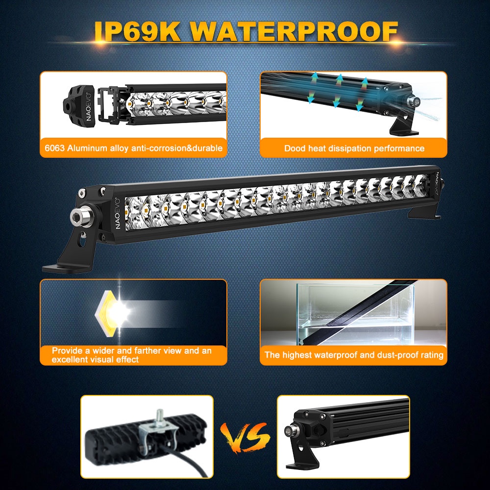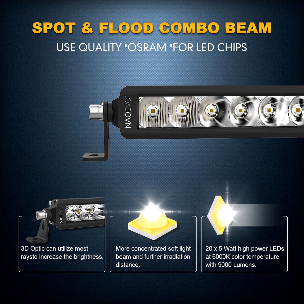 NAOEVO 12D LED Work Light Bar 100W 22'' inch Combo Beam Barra Led Bar Drl Fog Lights For Auto 4x4 Offroad ATV T