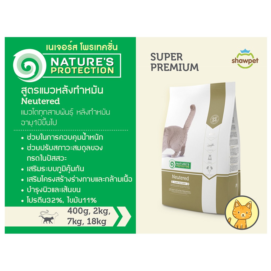 NATURE'S PROTECTION Neutered เนเจอร์ โปรเทคชั่น อาหารแมวสูตรสำหรับแมวโตหลังทำหมัน อายุ 1 ปีขึ้นไป ขนาด 2 กก.