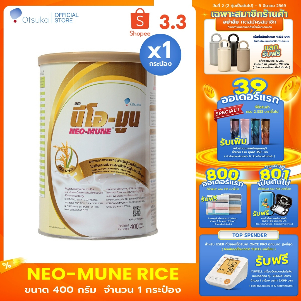 NEO-MUNE Japanese Rice Flavor 400 g. นีโอ-มูน กลิ่นข้าวญี่ปุ่น สำหรับผู้ป่วยที่ต้องการโปรตีนและพลังงาน จำนวน 1 กระป๋อง