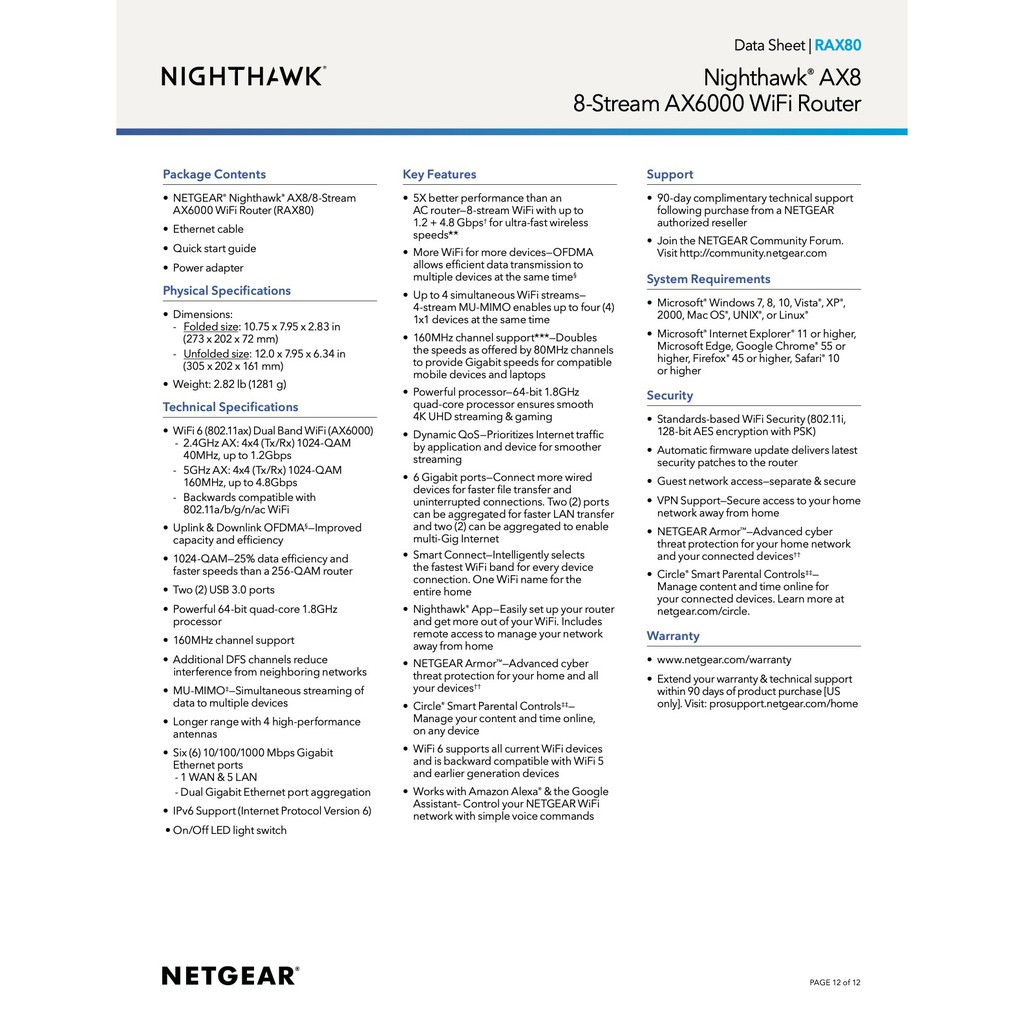 NETGEAR (RAX80) Nighthawk AX8 (AX6000) 8-Stream WiFi-6 Router