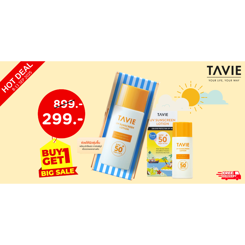 ทาวี่ ยูวี ซันสกรีน โลชั่น TAVIE UV Sunscreen Lotion SPF 50+ PA++++