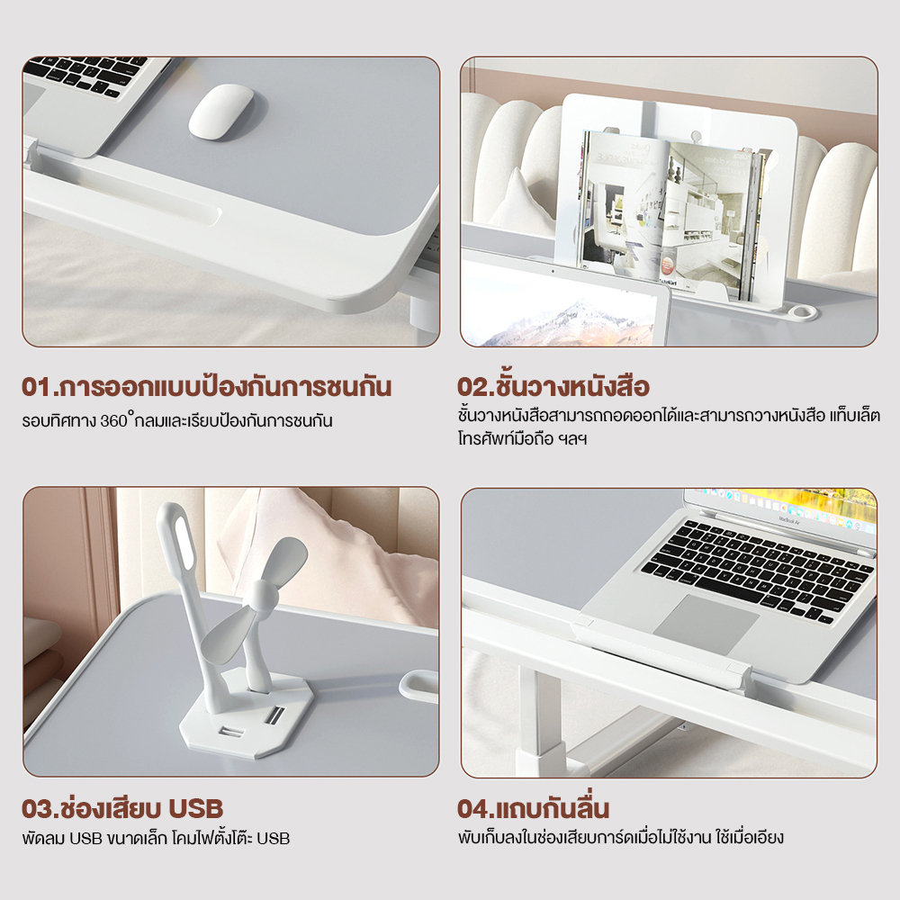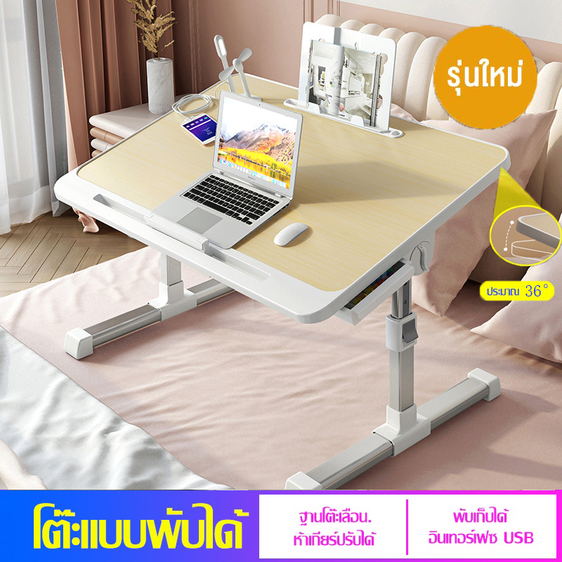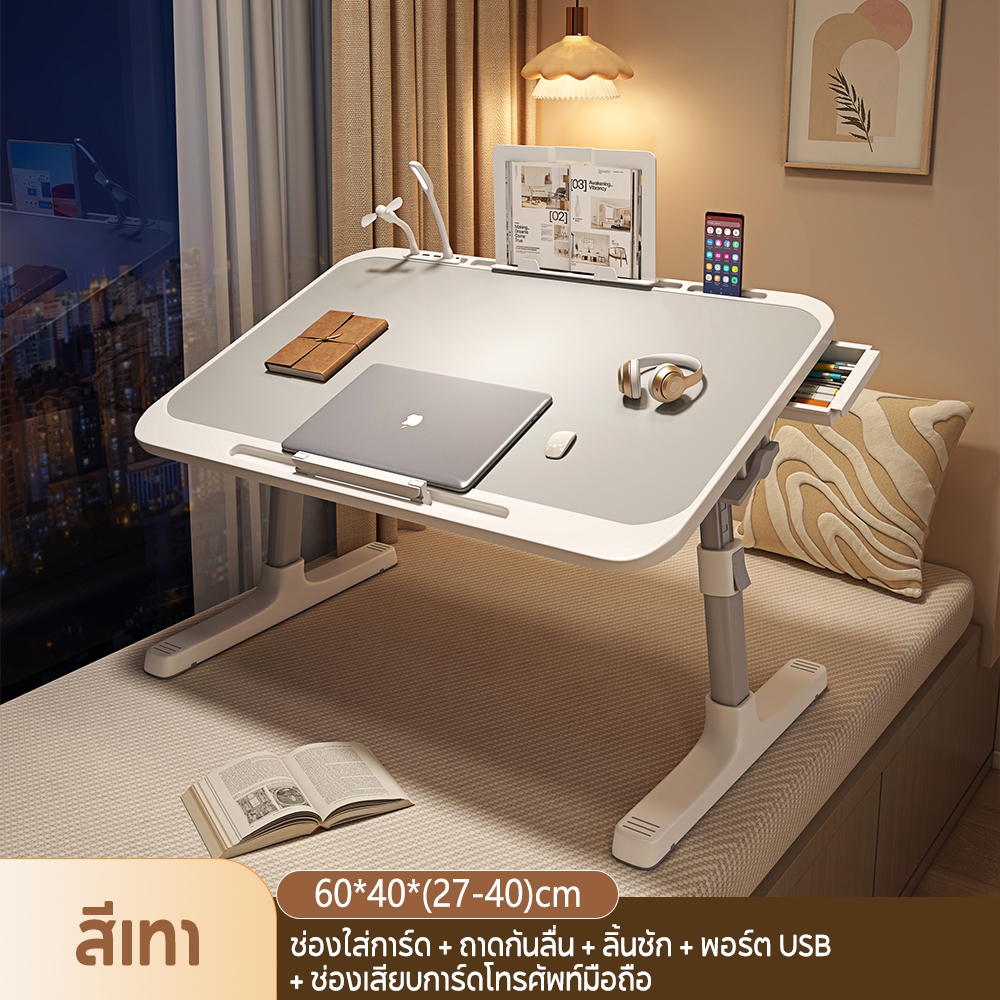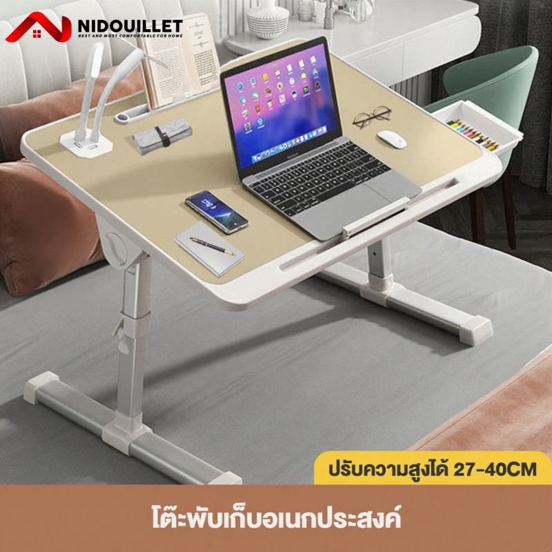 NIDOUILLET โต๊ะญี่ปุ่น โต๊ะแล็ปท็อป โต๊ะพับได้ โต๊ะพับญี่ปุ่น วางโน๊ตบุ๊ค ปรับระดับความสูงได้ 4 ระดับ
