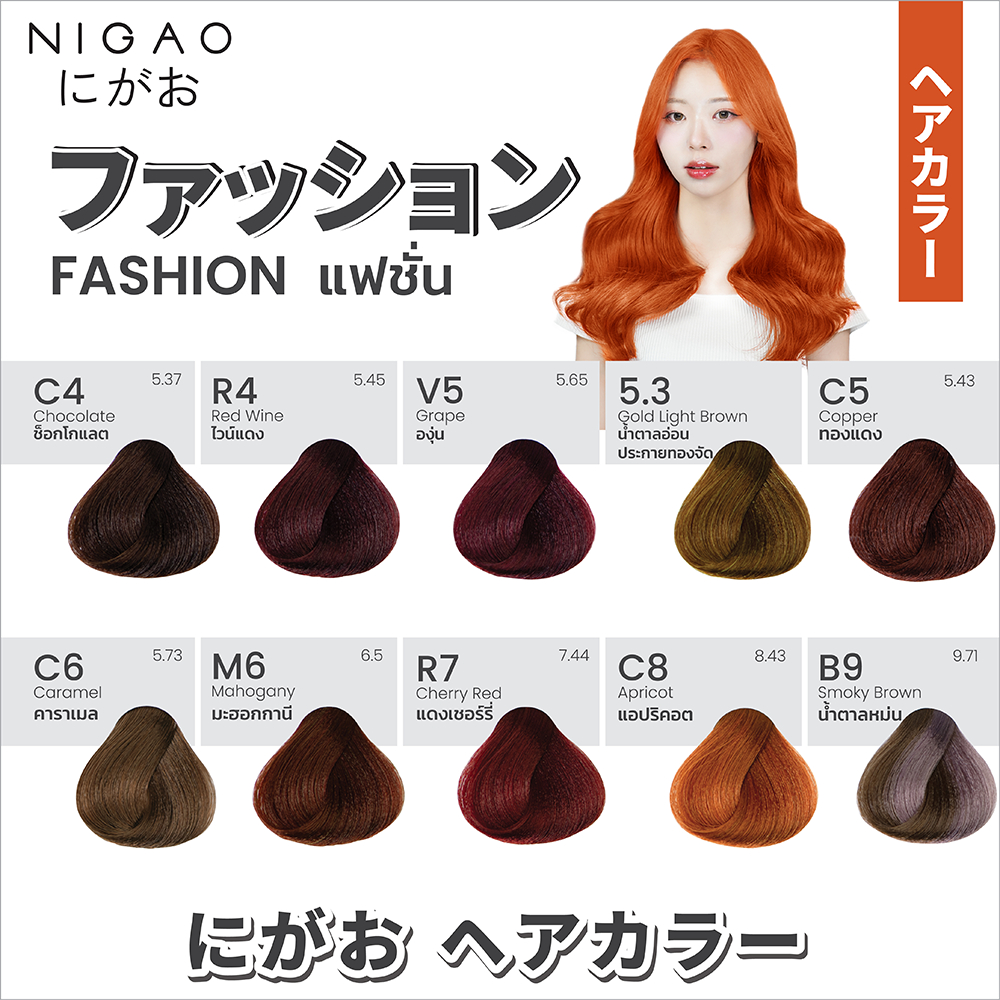 NIGAO Hair Color Fashion รวมโทนสีแฟชั่น สีย้อมผม สีแดง สีส้ม สีน้ำตาล สีองุ่น