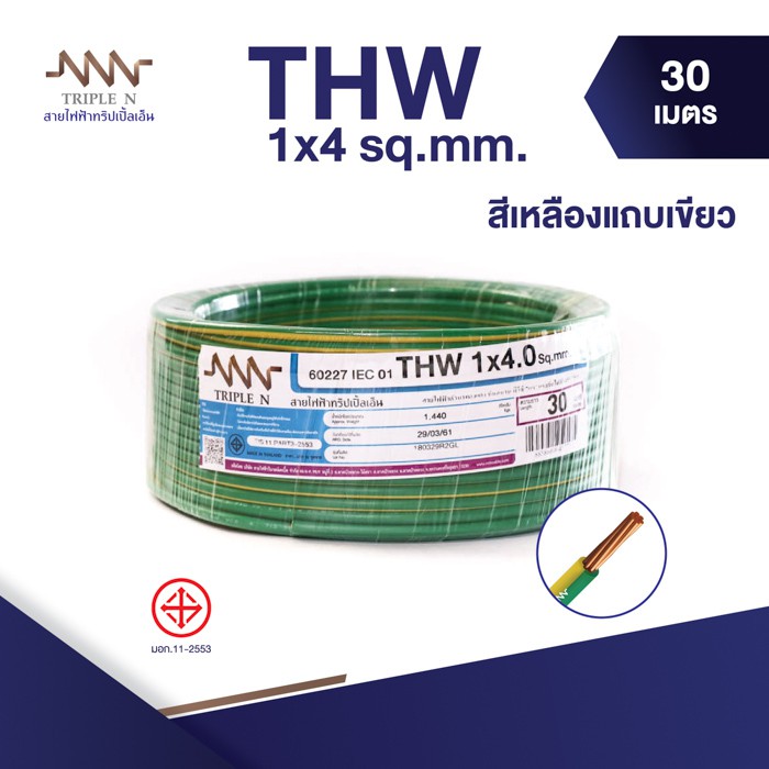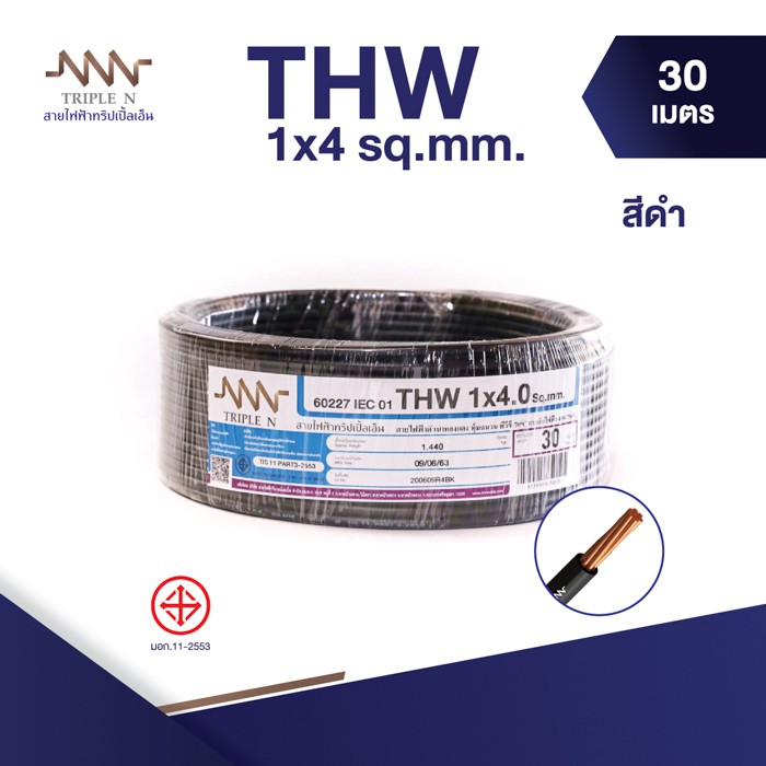 ส่งตรงจากโรงงาน สินค้าแท้100% สายไฟ Triple N (NNN) THW 1x4 ตร.มม. ยาว 30 เมตร
