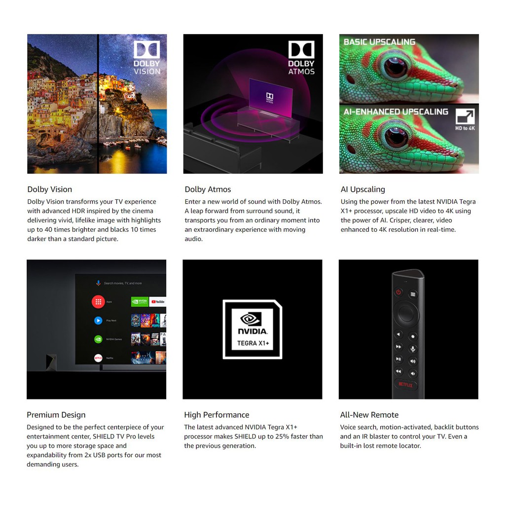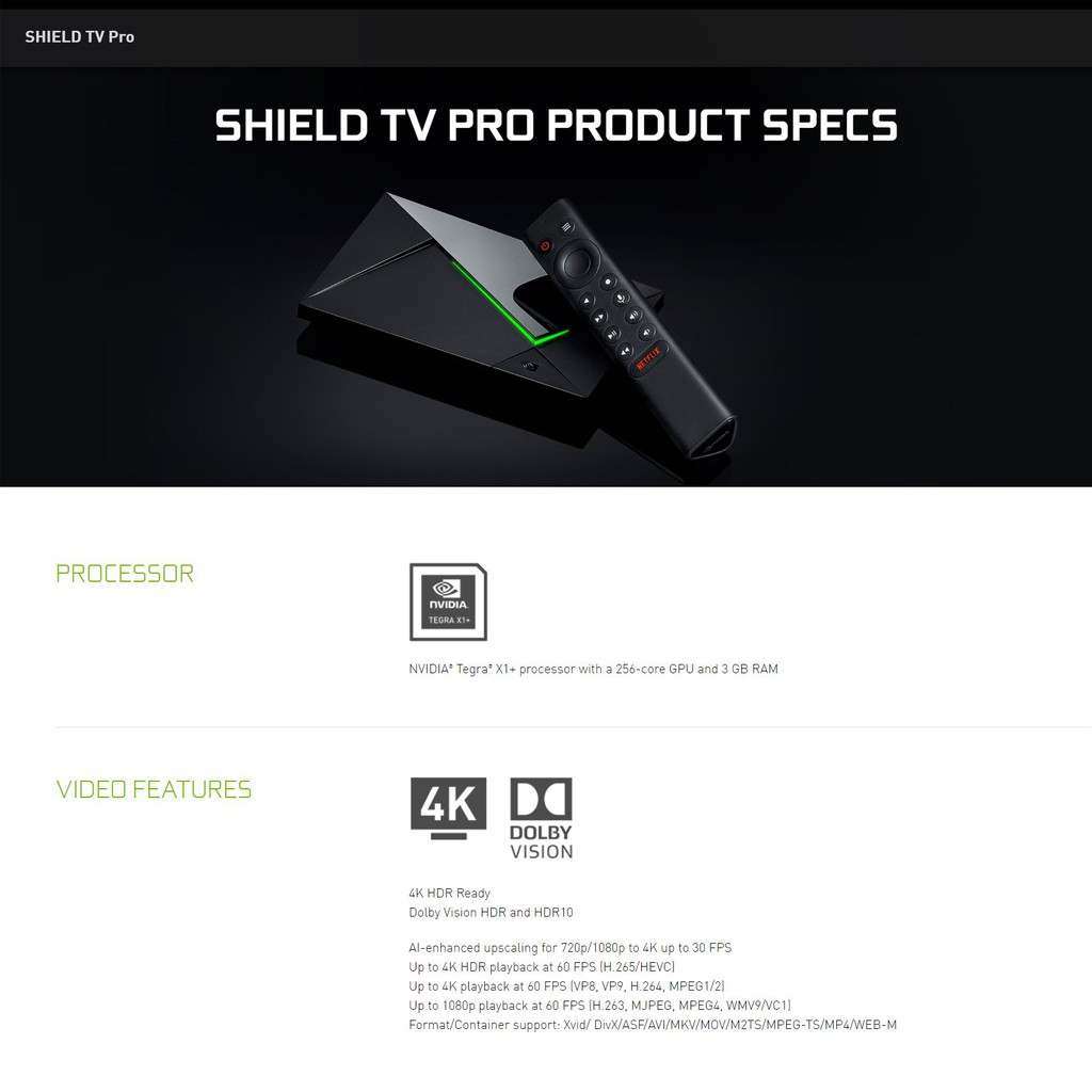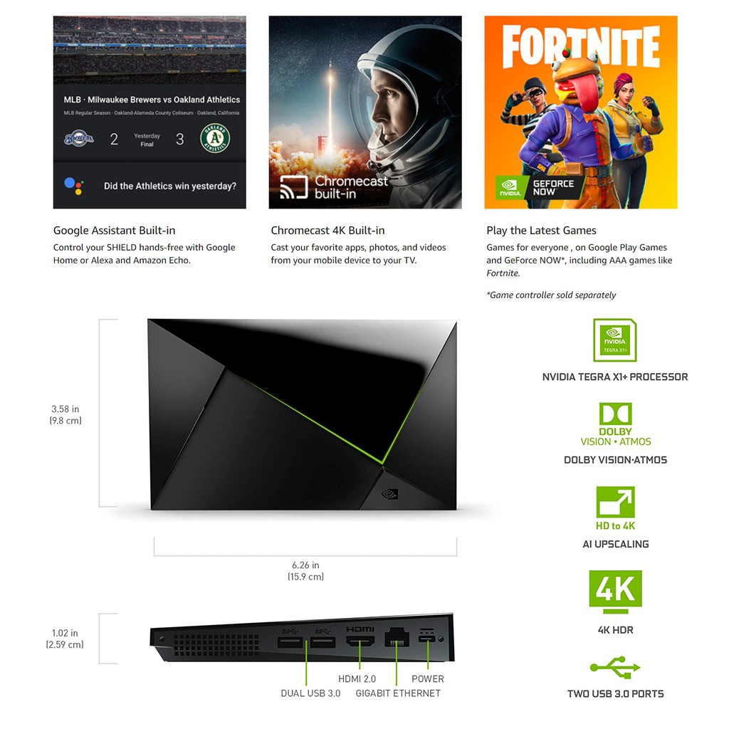 NVIDIA SHIELD Android TV Pro 4K (16GB)HDR Streaming, Dolby Vision, 3GB RAM, 2x USB, Works with Alexa - 1 Year Warranty