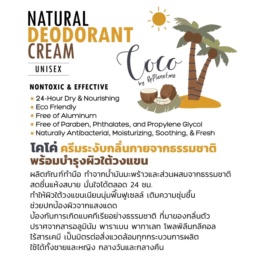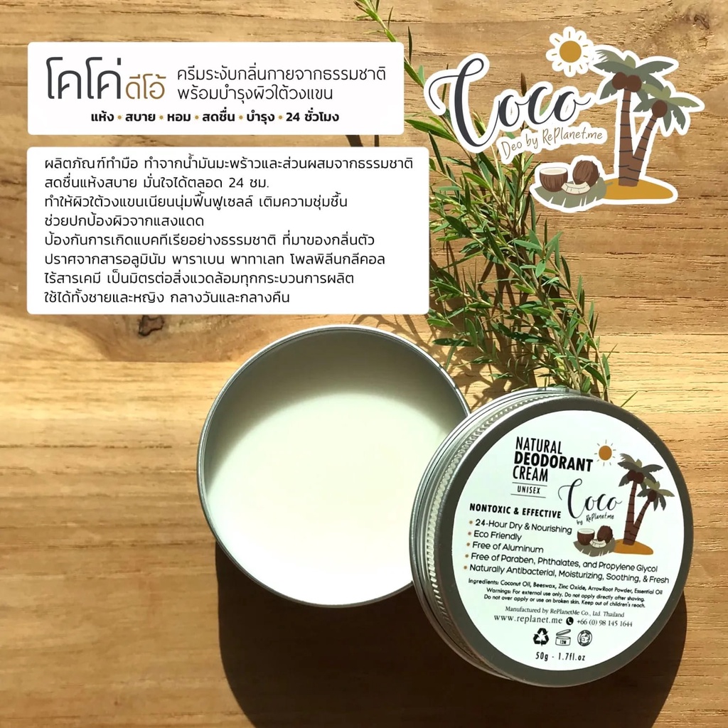 RePlanetMe COCO Deo Cream โคโค่ดีโอ้ - ครีมระงับกลิ่นกายจากธรรมชาติ แบบตลับ (50 g)