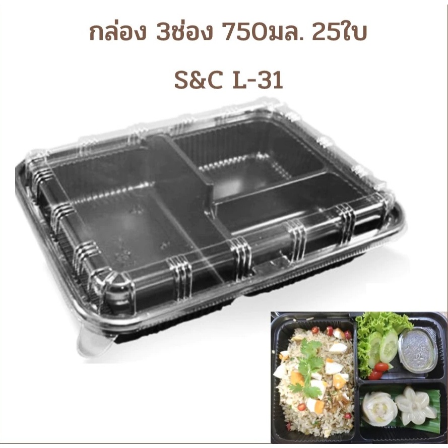 กล่องอาหาร 3 ช่อง สีดำ S&C L31 แพ็ค/25 ชิ้น