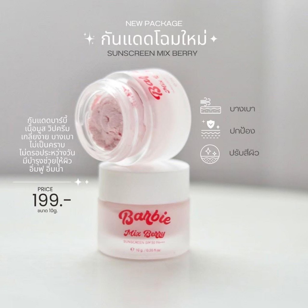 กันแดดบาร์บี้ barbies SPF50 PA+++ 10 g. ไม่มีน้ำหอม สเปรย์บาร์บี้ ล็อคเมคอัพ หน้าฉ่ำ โกลด์ 15 ml.