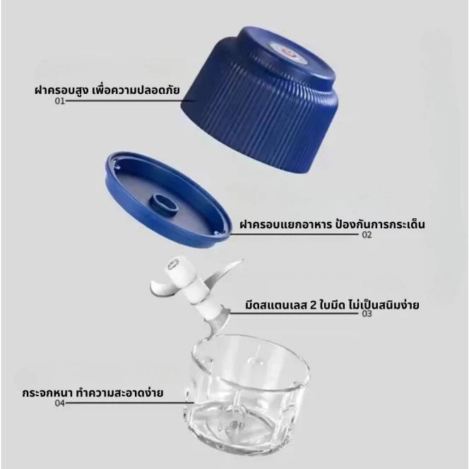 เครื่องปั่นกระเทียมไฟฟ้า USB ไร้สาย เครื่องปั่นอเนกประสงค์ บดกระเทียม ความจุ 300 มล. สีน้ำเงิน
