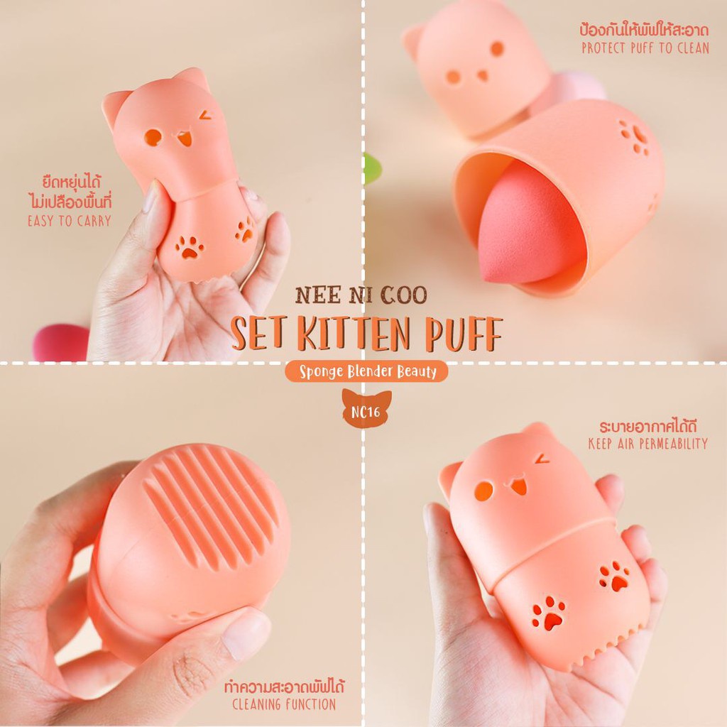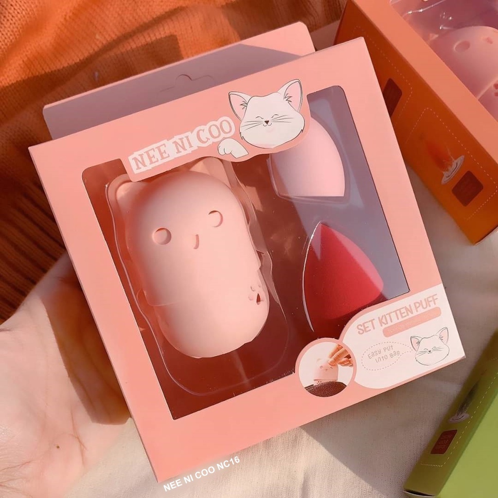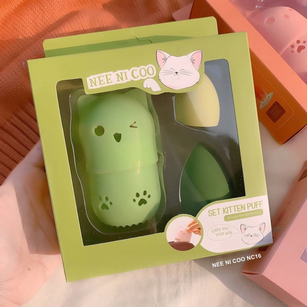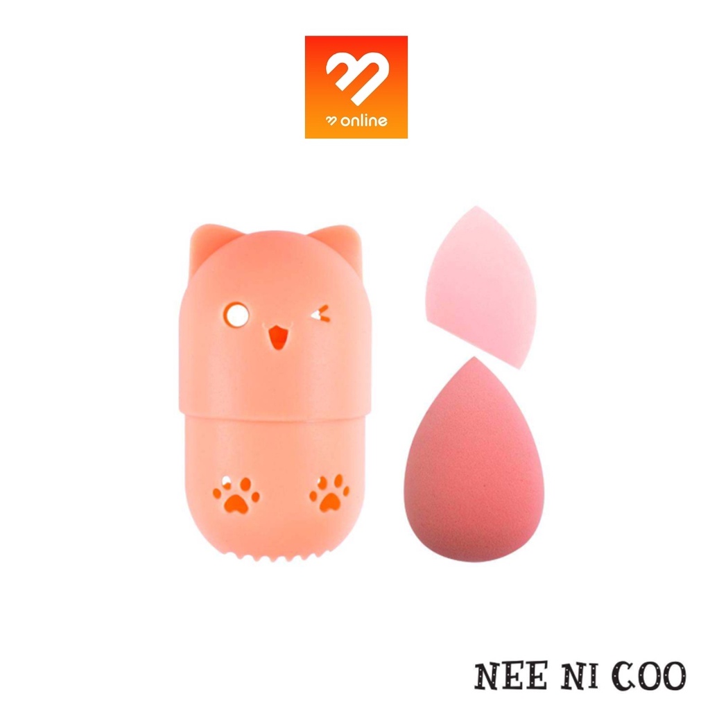 NEE Cara NI COO SET KITTEN PUFF เซ็ตฟองน้ำแต่งหน้า พัฟ ฟองน้ำ พร้อมที่เก็บแบบพกพา