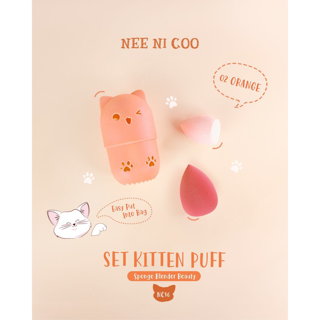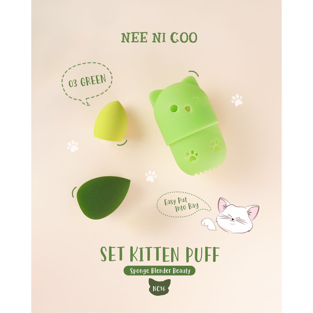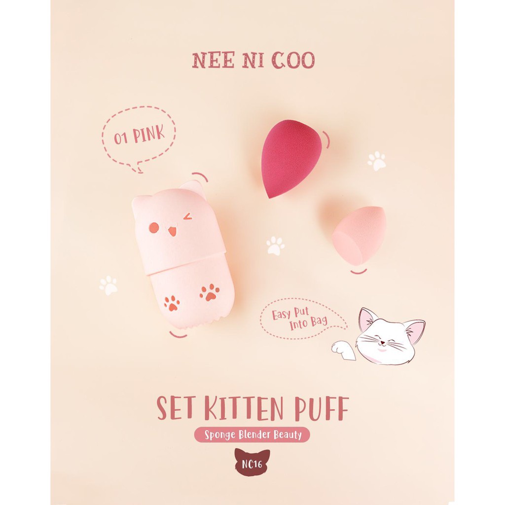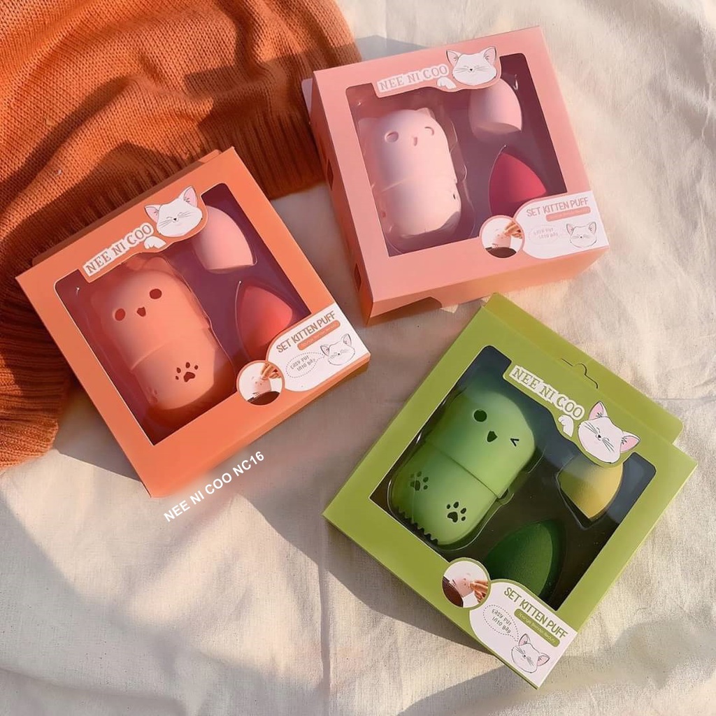 NEE Cara NI COO SET KITTEN PUFF เซ็ตฟองน้ำแต่งหน้า พัฟ ฟองน้ำ พร้อมที่เก็บแบบพกพา