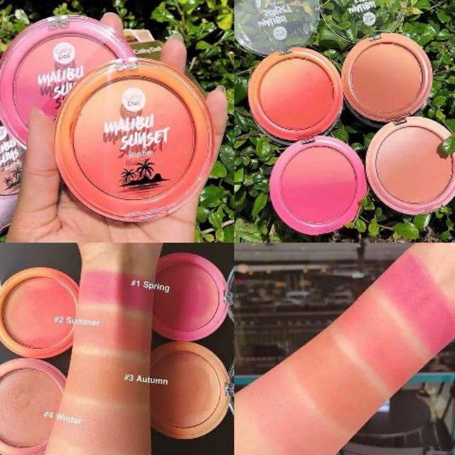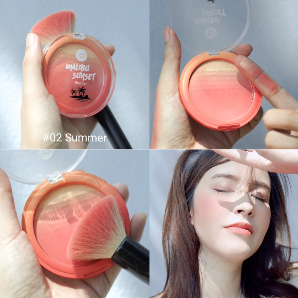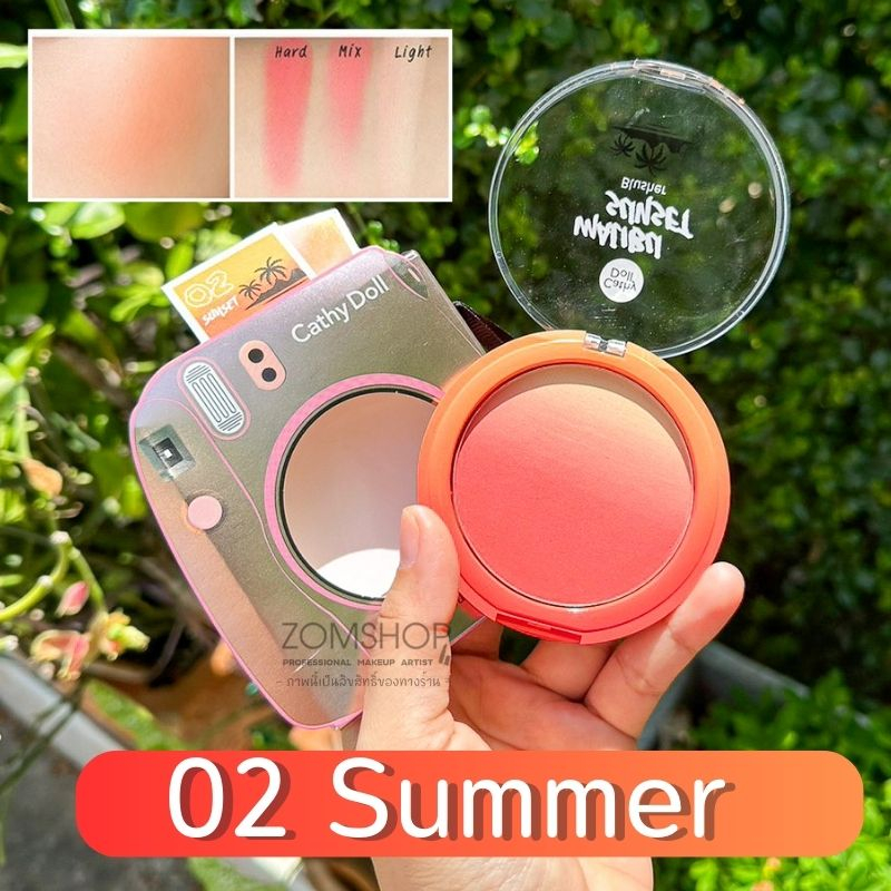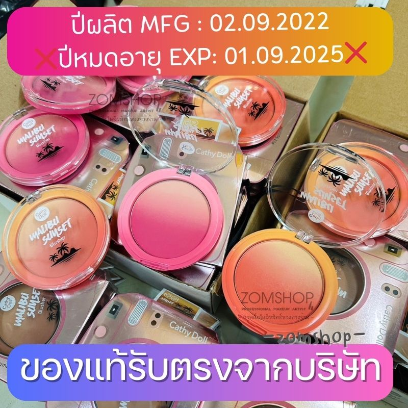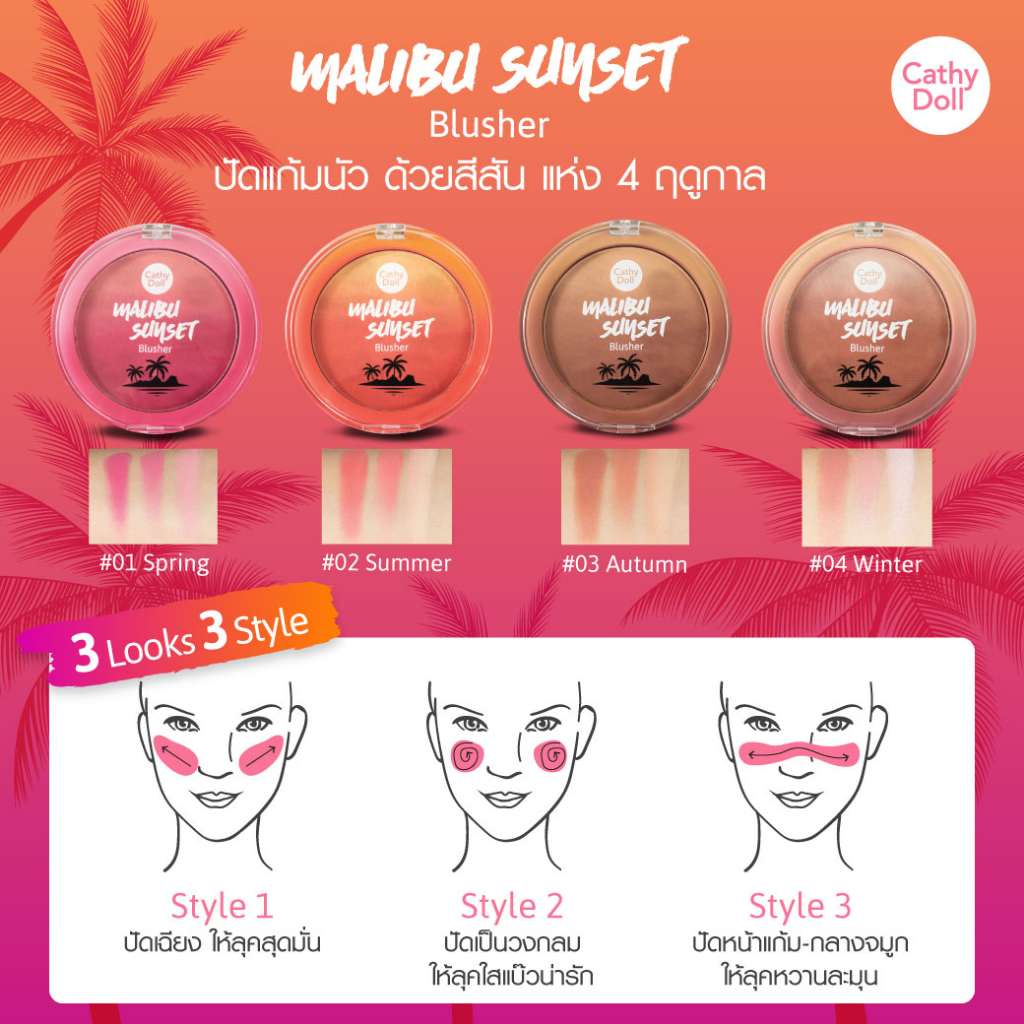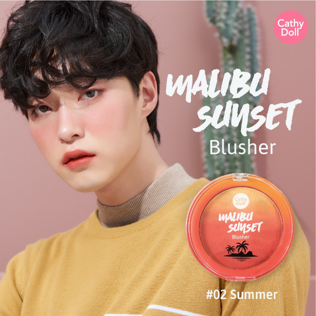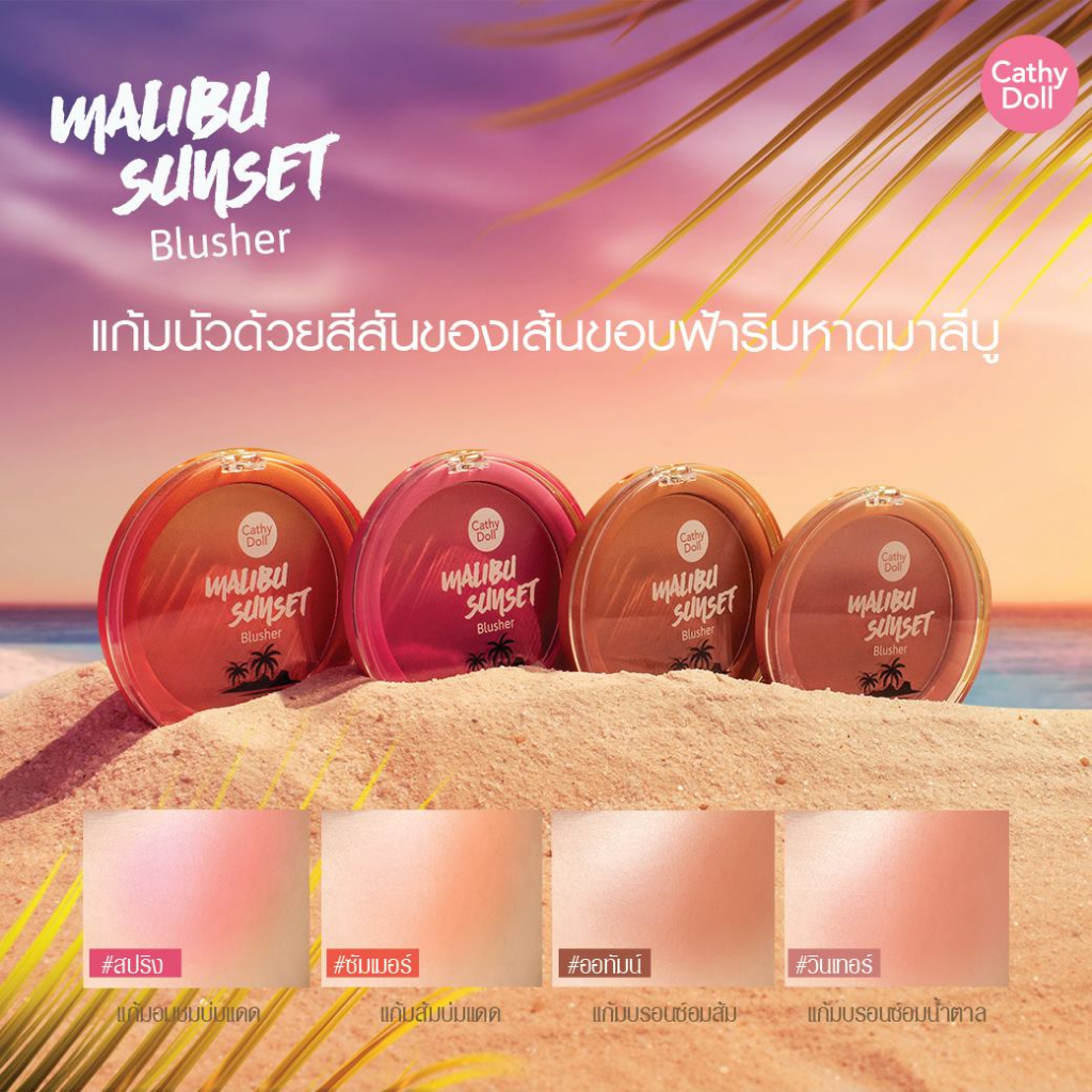 🌅 Sunset【บลัชออน】ปัดแก้ม บลัชเชอร์ไล่โทนสี【กันน้ำ กันเหงื่อ】Cathy Doll Malibu Sunset Blusher 7g.