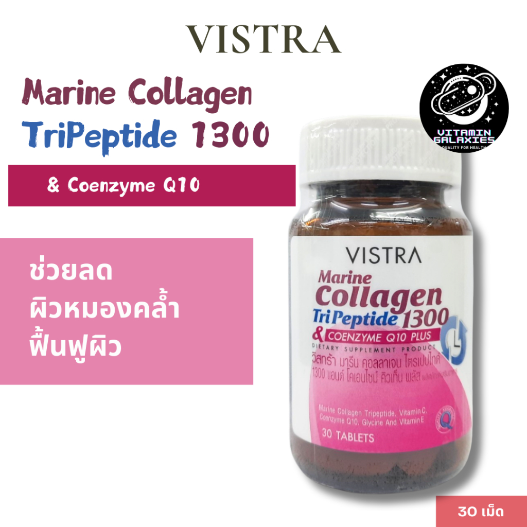 VISTRA Marine Collagen TriPeptide 1300 & Coenzyme Q10 (30 เม็ด) ของแท้ พร้อมส่ง