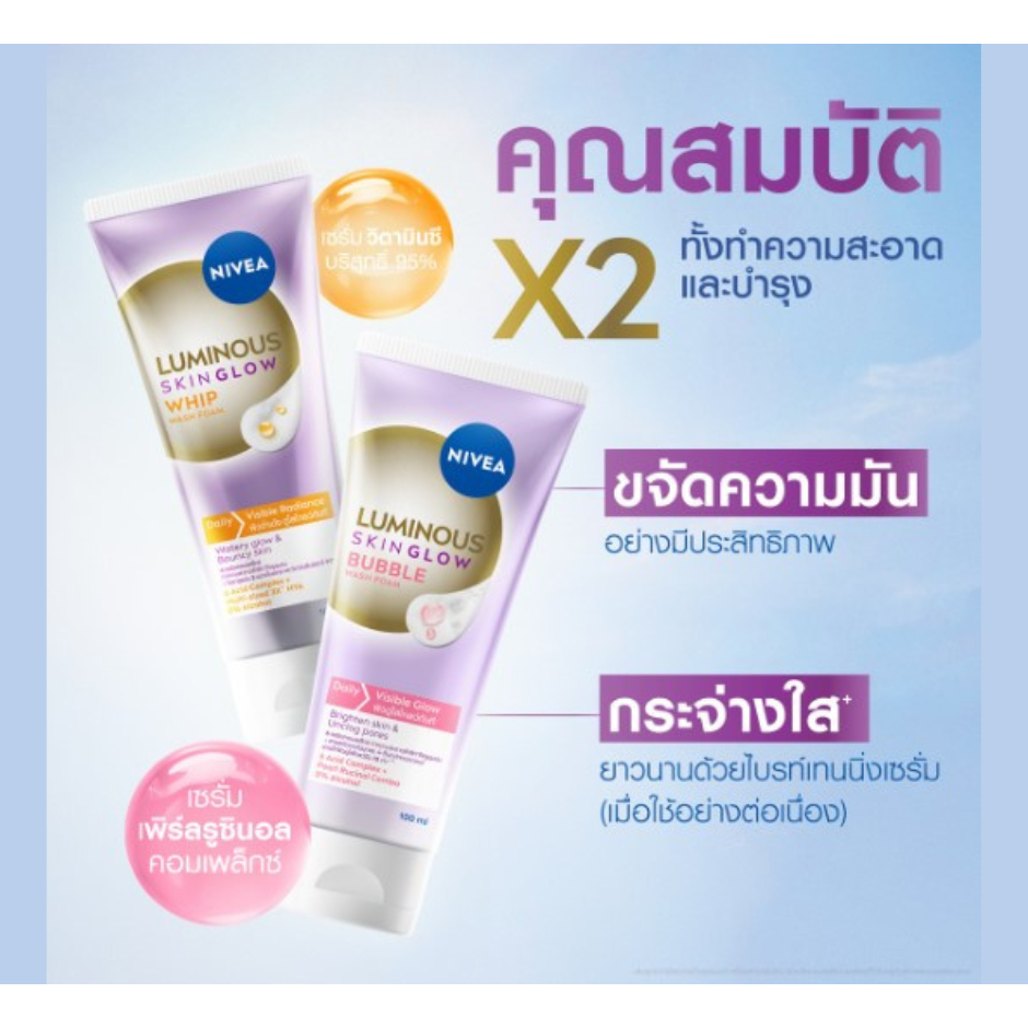นีเวีย ลูมินัส สกิน โกลว์ วอช โฟม ผลิตภัณฑ์ทำความสะอาดผิวหน้า ขนาด 100 มล.