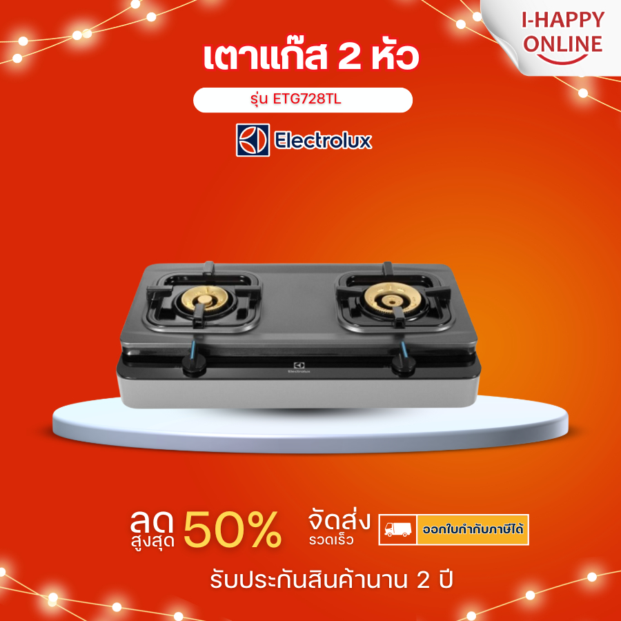 Electrolux เตาแก๊ส 2 หัว เคลือบเทฟล่อน เตาแก๊สอีเลคโทรลักซ์ รุ่น ETG728TL รับประกันศูนย์ 2 ปี
