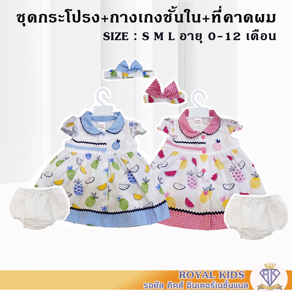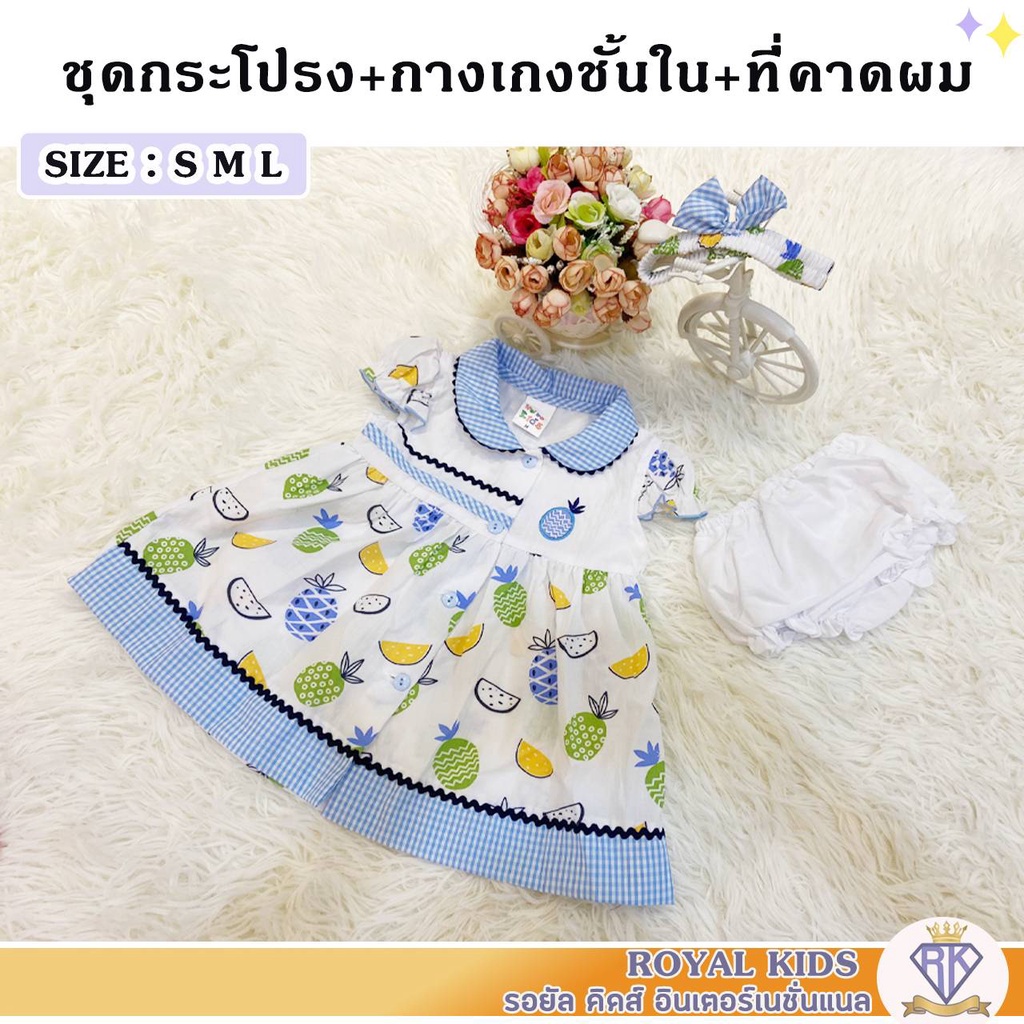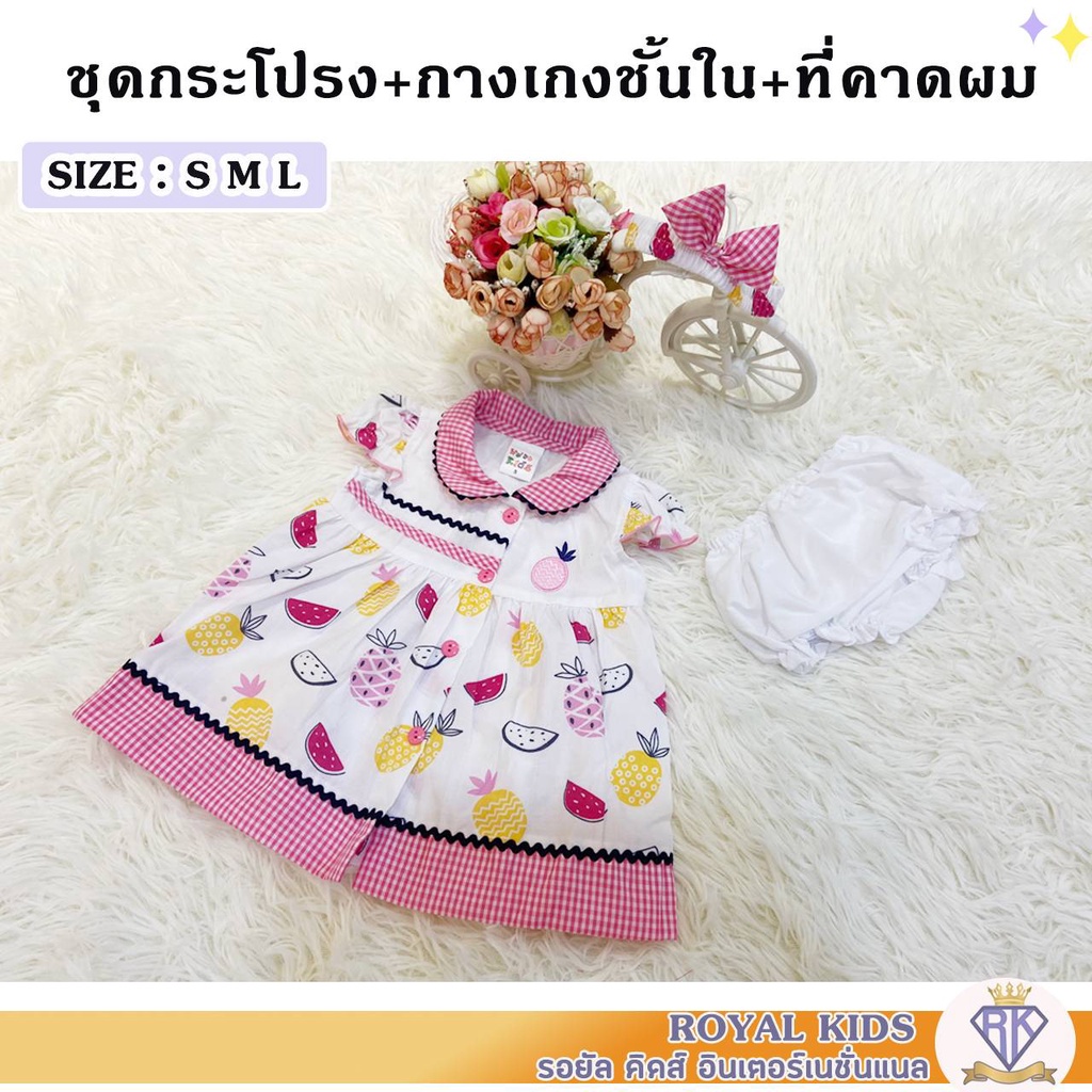 S0040 ชุดเด็กอ่อน 0-1ปี เดรสกระโปรง ฟรีที่คาดผมและกางเกงชั้นในเด็ก ชุดเดรสผ้าฝ้ายพิมพ์ลายดอกไม้ เสื้อผ้าเด็กผู้หญิง