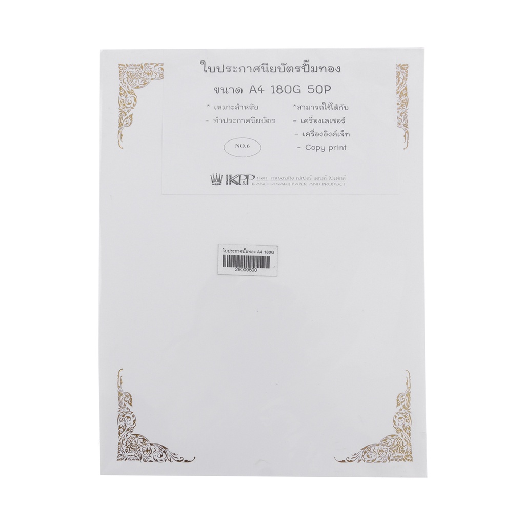 กระดาษการ์ด ปั้มทอง A4 180 แกรม สีขาว (แพ็ค 50 แผ่น) |ZWG|
