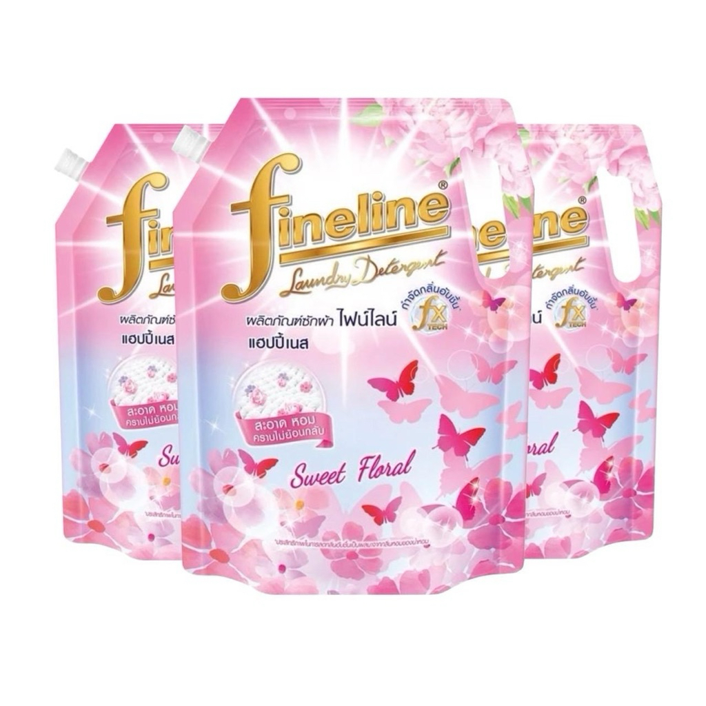 { แพ็ค3 } Fineline ไฟน์ไลน์ แฮปปี้เนส ผลิตภัณฑ์ซักผ้า กลิ่น สวีท ฟลอรัล 1400 มล. x 3 ถุง สีชมพู ทำความสะอาด Clean