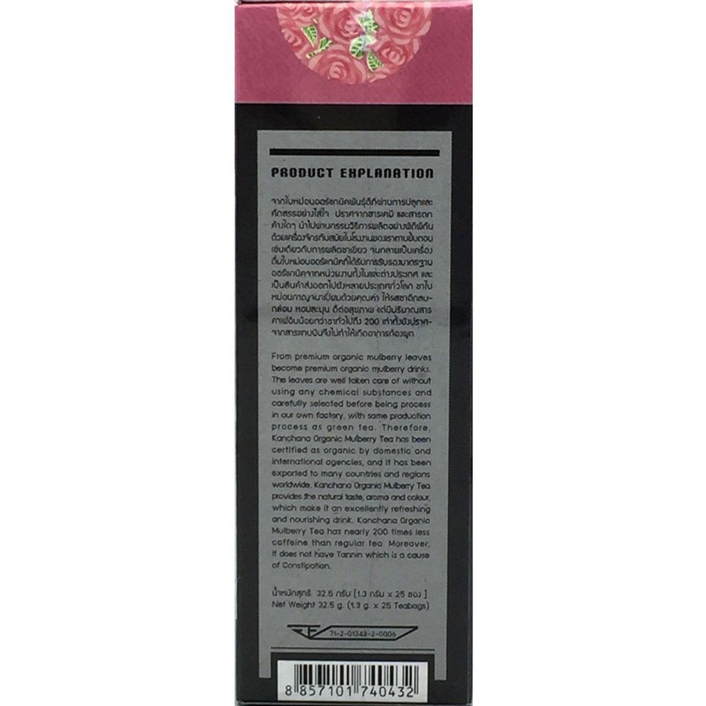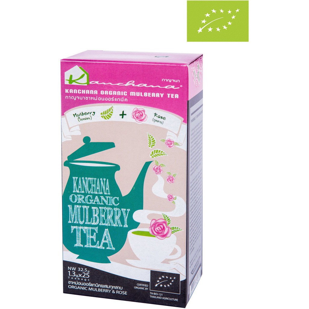 Kanchana Organic Mulberry Tea + Rose 25 Teabags กาญจนา ชาหม่อนออร์แกนิค ผสมกุหลาบ 25 ซอง (32.5g)