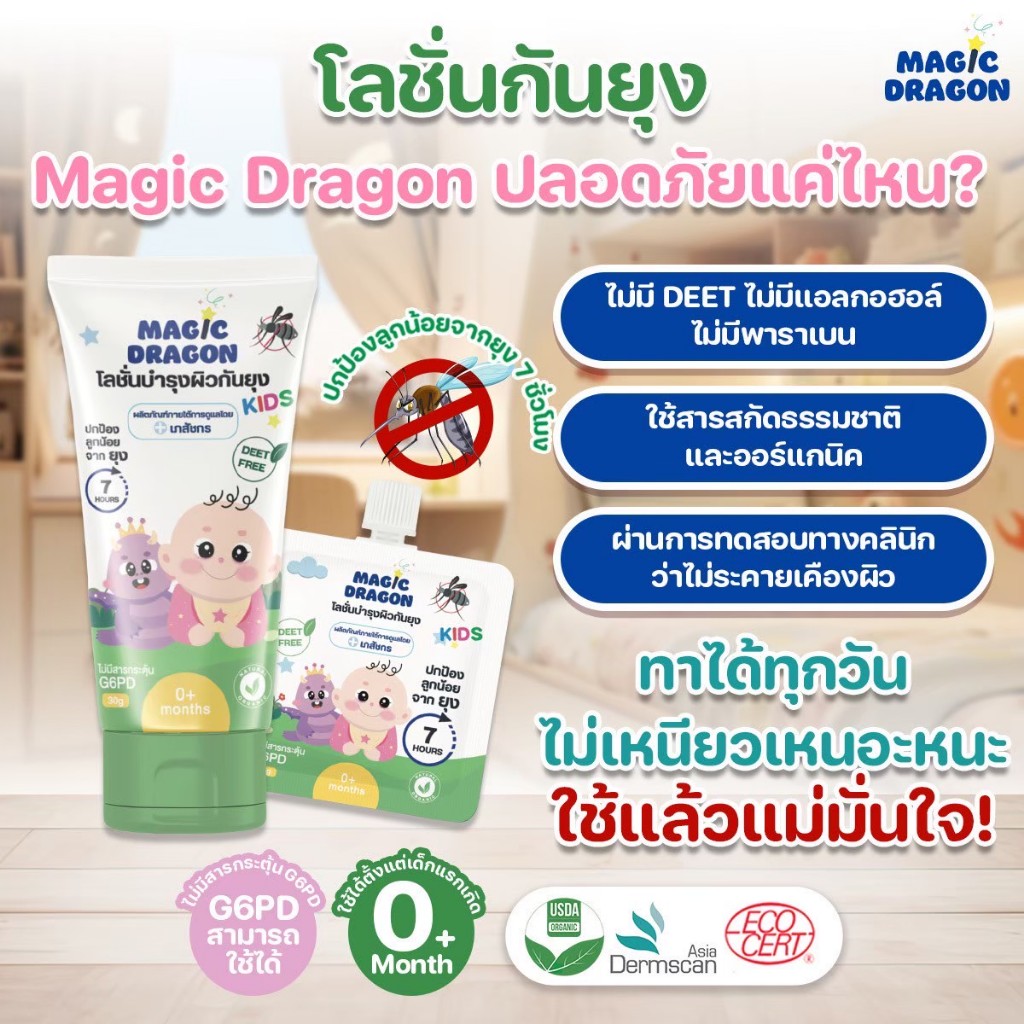 Magic Mozzie Lotion โลชั่นกันยุง สำหรับเด็กแรกเกิด,G6PD สารสกัดออร์แกนิก กันยุงนาน 7 ชั่วโมง