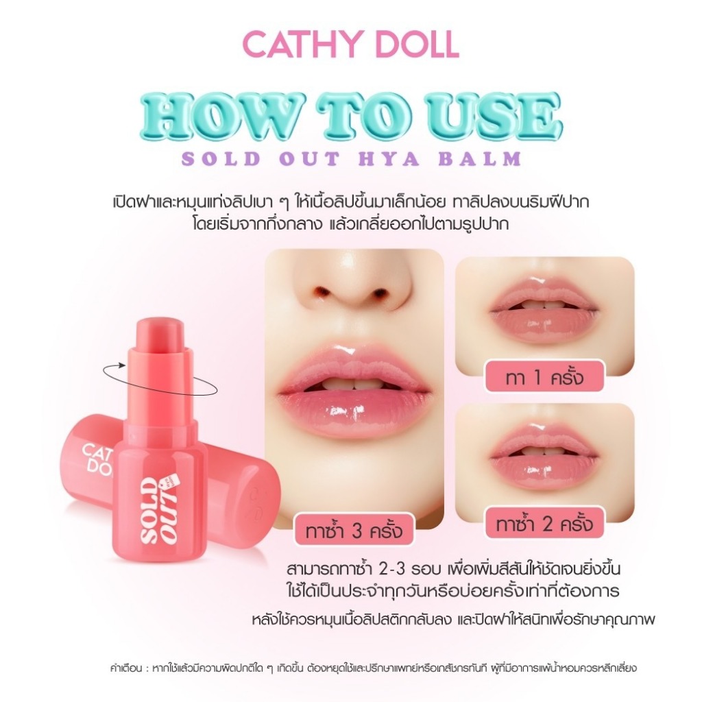 ถูก/แท้/มีไลฟ์ ลิป Cathy Doll Sold Out Hya Balm ไฮยาบาล์มฉ่ำน้ำ ลิปบาล์ม อวบอิ่ม ฉ่ำวาว บางเบา ชุ่มชื้น ไม่เหนียว