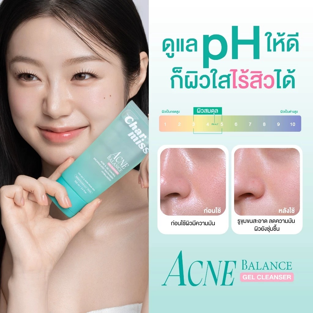 ถูก/แท้/มีไลฟ์ เจลล้างหน้า Charmiss Acne Balance Gel Cleanser โฟมล้างหน้า คุมมัน ลดสิว ผิวไบร์ท กระจ่างใส ชุ่มชื้น