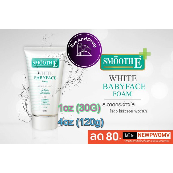 โฟมขาว Smooth E White Babyface Foam สมูทอี ไวท์ โฟม ขาวใสและอ่อนเยาว์ 1 / 2 / 4 / 6 ออนซ์ [มีทุกขนาด] 30g 120g 180g