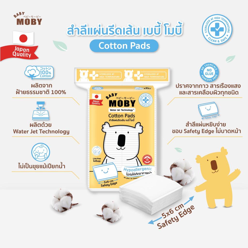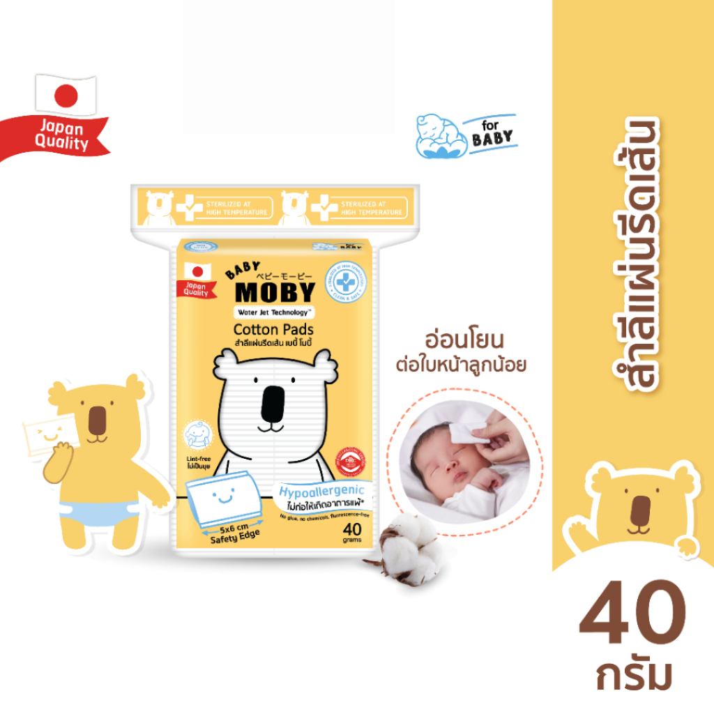 Baby Moby สำลีแผ่นเล็ก รีดขอบ 40 กรัม เกรดพรีเมี่ยม ขนาด 5x6 ซม. เช็ดทำความสะอาดเด็ก ของใช้เด็กอ่อน 1 ห่อ