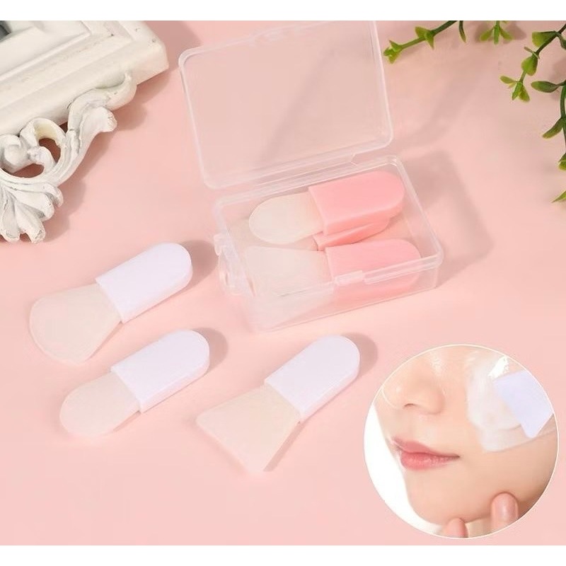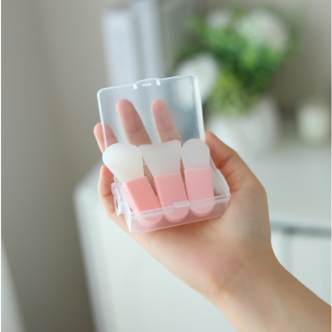 แปรงมาส์กหน้าด้ามสั้นซิลิ แบบพกพา แพ็ค 3 ชิ้น