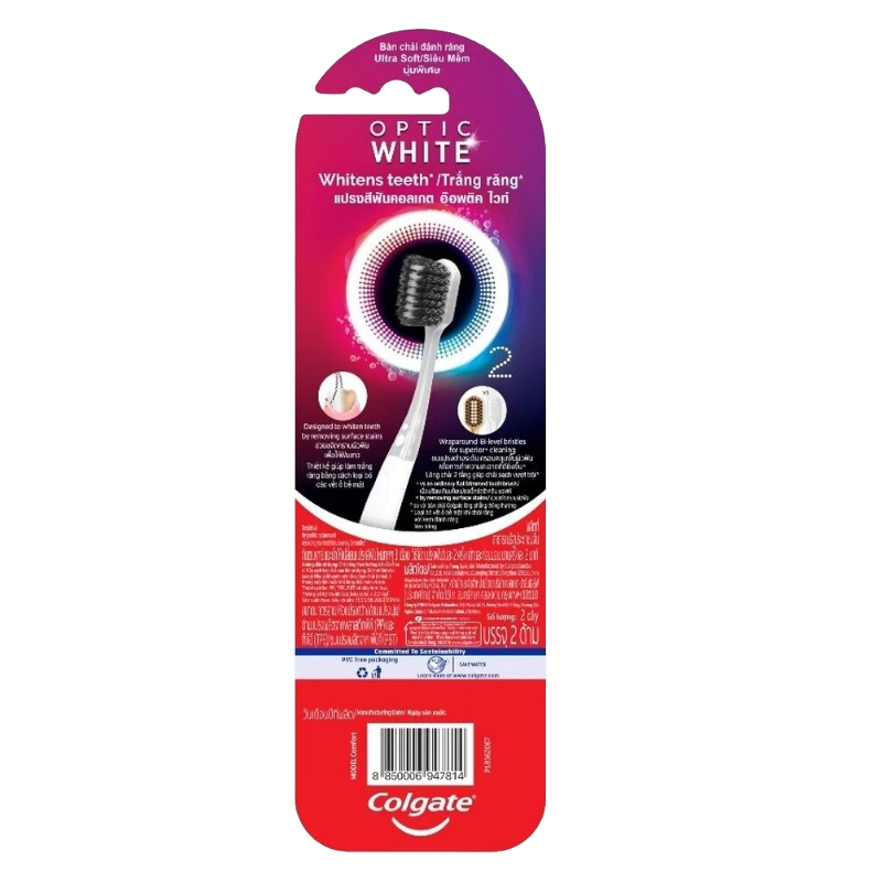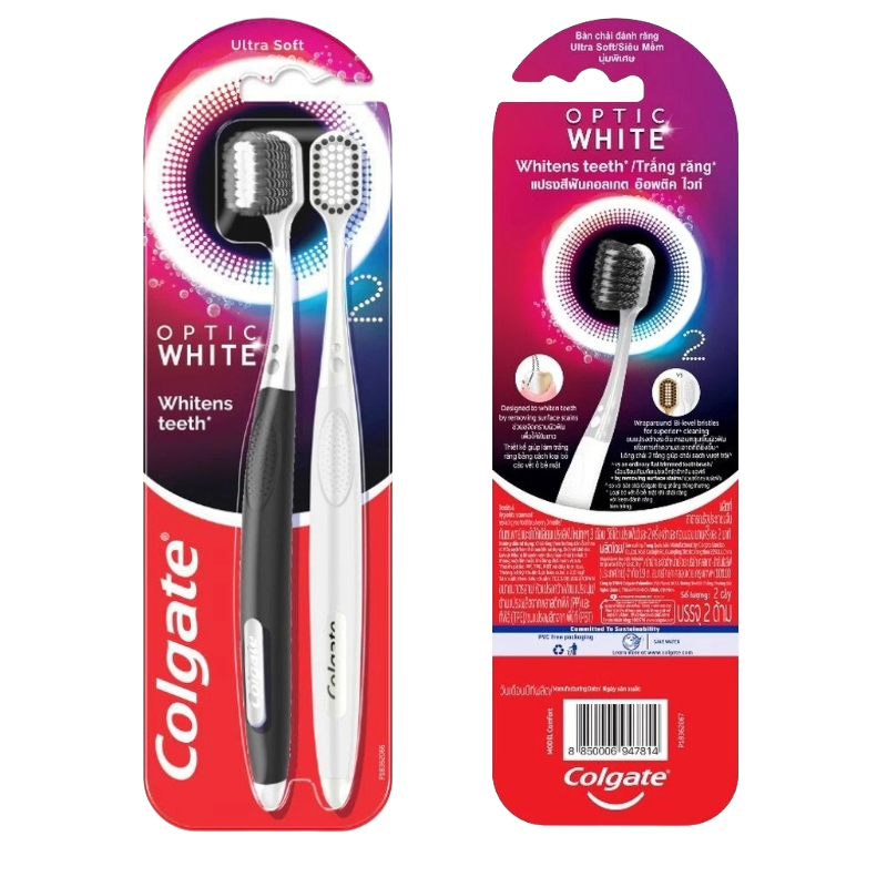ลดเพิ่ม 30% 🔥 Colgate Optic White Ultra Soft Toothbrush Pack เเปรงสีฟันอ๊อพติคไวท์ ขจัดคราบผิวฟัน เพื่อให้ฟันขาว แพ็ค 2