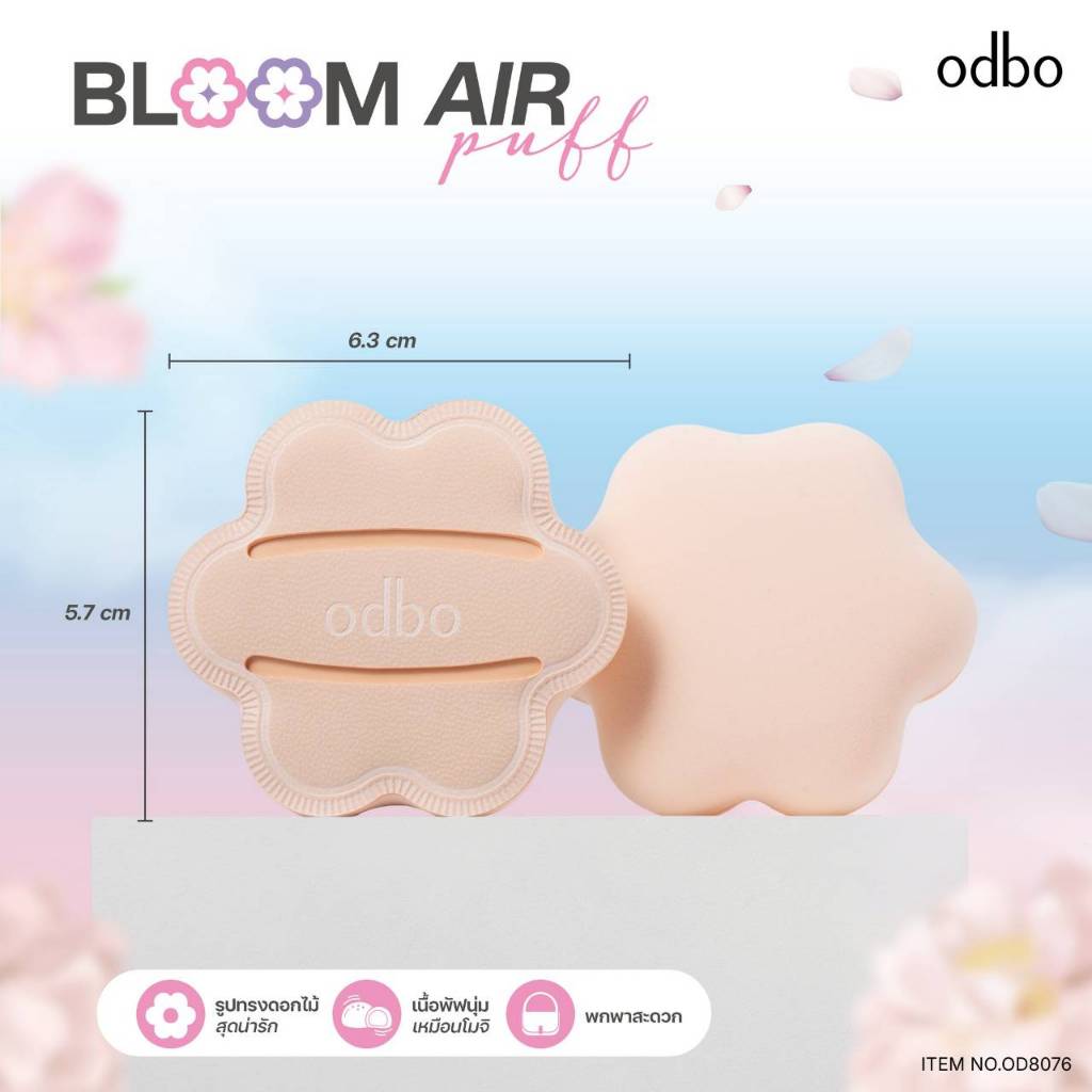 OD8076 พัฟแต่งหน้า หนานุ่ม บูม แอร์ พัฟ odbo Bloom Air Puff พัฟดอกไม้ สำหรับผิวใส ODBO โอดีบีโอ