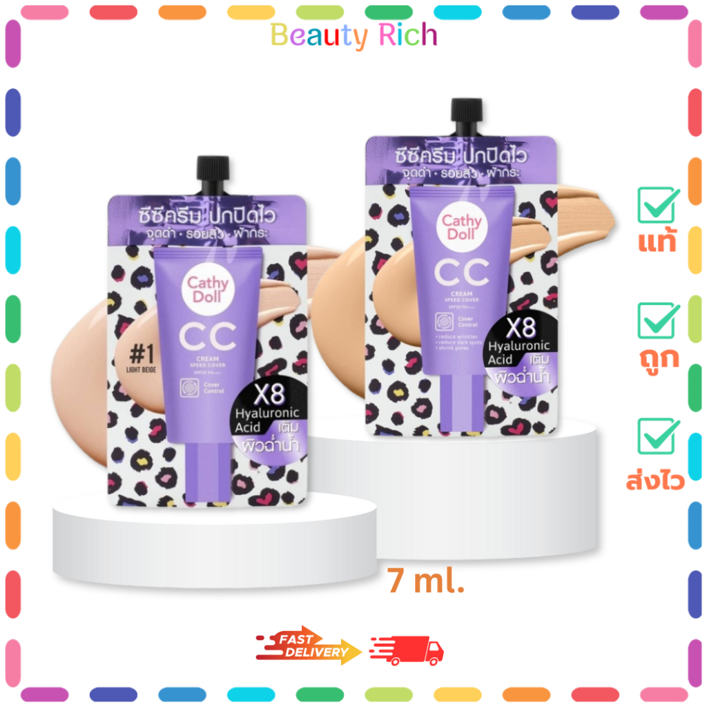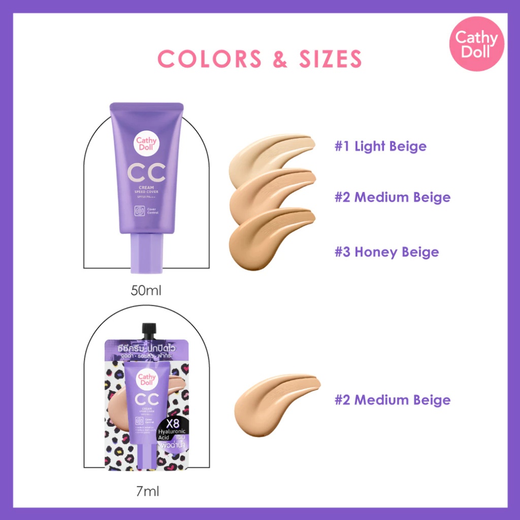 (1 ซอง) Cathy Doll ซีซีครีมสปีดคัฟเวอร์ SPF50 PA+++ มี 2 เฉดสีให้เลือก (ปริมาณ 7 ml.)