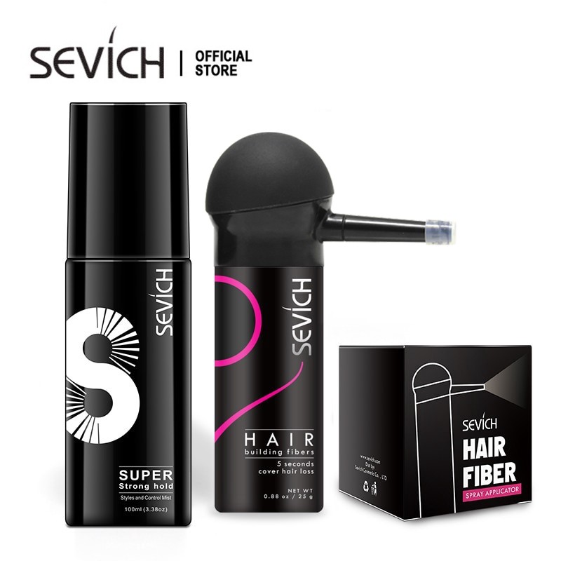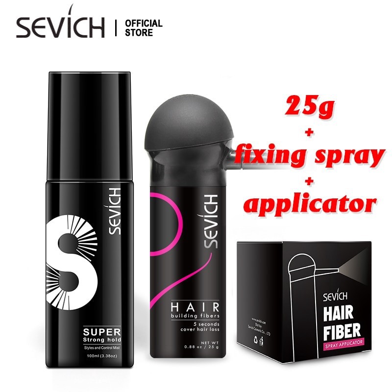 Sevich ผงไฟเบอร์เพิ่มเส้นผม 25 กรัม + หัวปั๊มผงไฟเบอร์ + สเปรย์จัดแต่งทรงผม เพิ่มวอลุ่มให้เส้นผม เสริมความมั่นใจ สำหรับผู้มีผมบาง ศีรษะล้าน